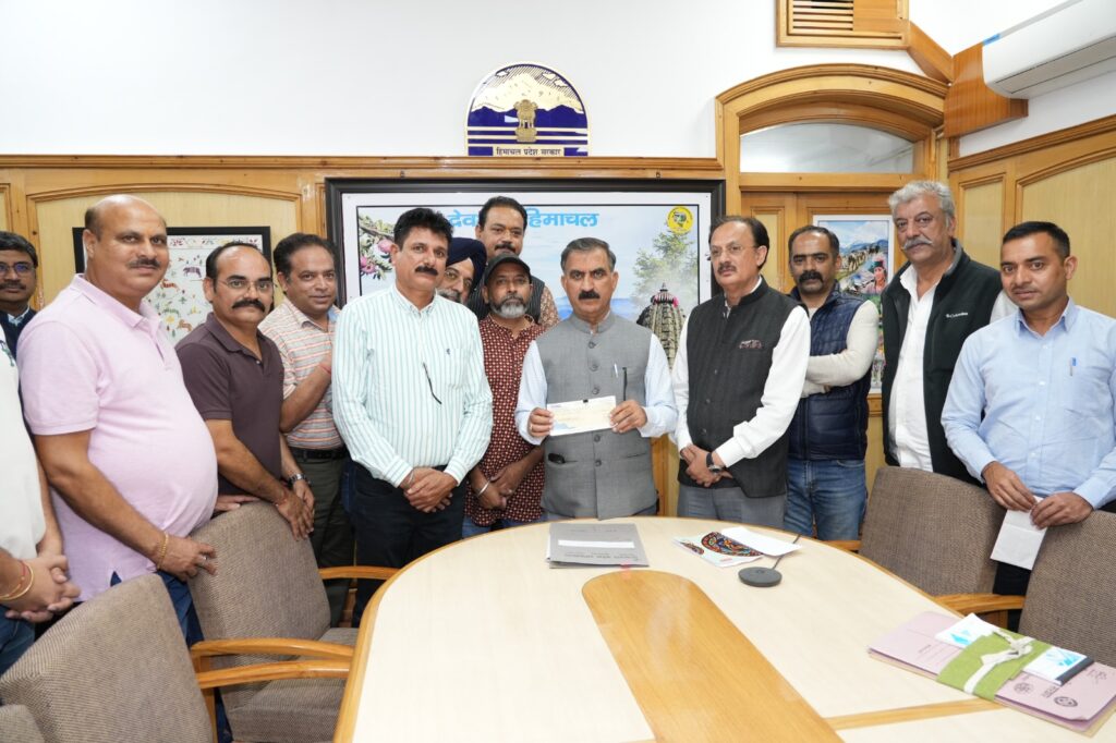 CM ठाकुर सुखविंदर सिंह सुक्खू को आपदा राहत कोष के लिए हिमाचल प्रदेश सामान्य उद्योग निगम की ओर से उद्योग मंत्री हर्षवर्धन चौहान ने 51 लाख रुपये का चेक भेंट किया।बैजनाथ विधानसभा क्षेत्र की विभिन्न संस्थाओं की ओर से मुख्य संसदीय सचिव किशोरी लाल ने मुख्यमंत्री ठाकुर सुखविंदर सिंह सुक्खू को आपदा राहत कोष के लिए 7.75 लाख रुपये का चेक भेंट किया।इंदौरा विधानसभा क्षेत्र के विधायक मलेन्द्र राजन ने क्षेत्र की जनता की ओर से आपदा राहत कोष के लिए मुख्यमंत्री ठाकुर सुखविंदर सिंह सुक्खू को 25 लाख रुपये के चेक भेंट किए।क्रशर एसोसिएशन, ऊना ने मुख्यमंत्री राहत कोष के लिए मुख्यमंत्री ठाकुर सुखविंदर सिंह सुक्खू को 11 लाख रुपये का अंशदान दिया।मुख्यमंत्री ने अंशदान के लिए आभार व्यक्त करते हुए कहा कि यह अंशदान आपदा प्रभावितों को राहत पहुंचाने में सहायक सिद्ध होंगे।इस अवसर पर ग्रामीण विकास एवं पंचायती राज मंत्री अनिरूद्ध सिंह,विधायक हरीश जनारथा, मुख्य सचिव प्रबोध सक्सेना,प्रधान सचिव आर.डी.नजीम, प्रबंध निदेशक सामान्य उद्योग निगम राकेश कुमार प्रजापति और अन्य गणमान्य लोग उपस्थित थे।