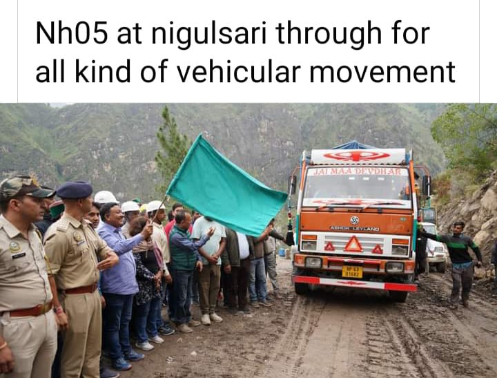 जिला किन्नौर के निगुलसरी के पास गत 7 सितम्बर की रात को भारी भूस्खलन के कारण अवरुद्ध हुए राष्ट्रीय उच्च मार्ग-5 को रविवार दोपहर बाद छोटे व बड़े सभी प्रकार के वाहनों के लिए बहाल कर दिया गया है।रविवार को दस दिन बाद मार्ग के बहाल होने से वाहन चालकों सहित जिले के लोगों व बागवानों ने राहत की सांस ली है और जिला किन्नौर फिर से देश-दुनिया से जुड़ गया है।रविवार दोपहर बाद मार्ग के बहाल होते ही रिकांगपिओ से रामपुर-शिमला व रामपुर-शिमला से रिकांगपिओ की ओर छोटे व बड़े वाहनों की आवाजाही फिर से सुचारू रूप से शुरू हो गई है।मार्ग खुलने पर राजस्व एवं बागवानी मंत्री जगत सिंह नेगी ने हरी झंडी दिखा कर वाहनों को रवाना किया।पहले किन्नौर से वाहनों को निकाला गया ताकि कई दिनों से अवरुद्ध मार्ग में फंसे सेब व मटर की गाडिय़ां मंडियों में पहुंच सकें और मार्ग खुलने के साथ पिछले कई दिनों से फंसे वाहन अपने गंतव्य की ओर निकले।