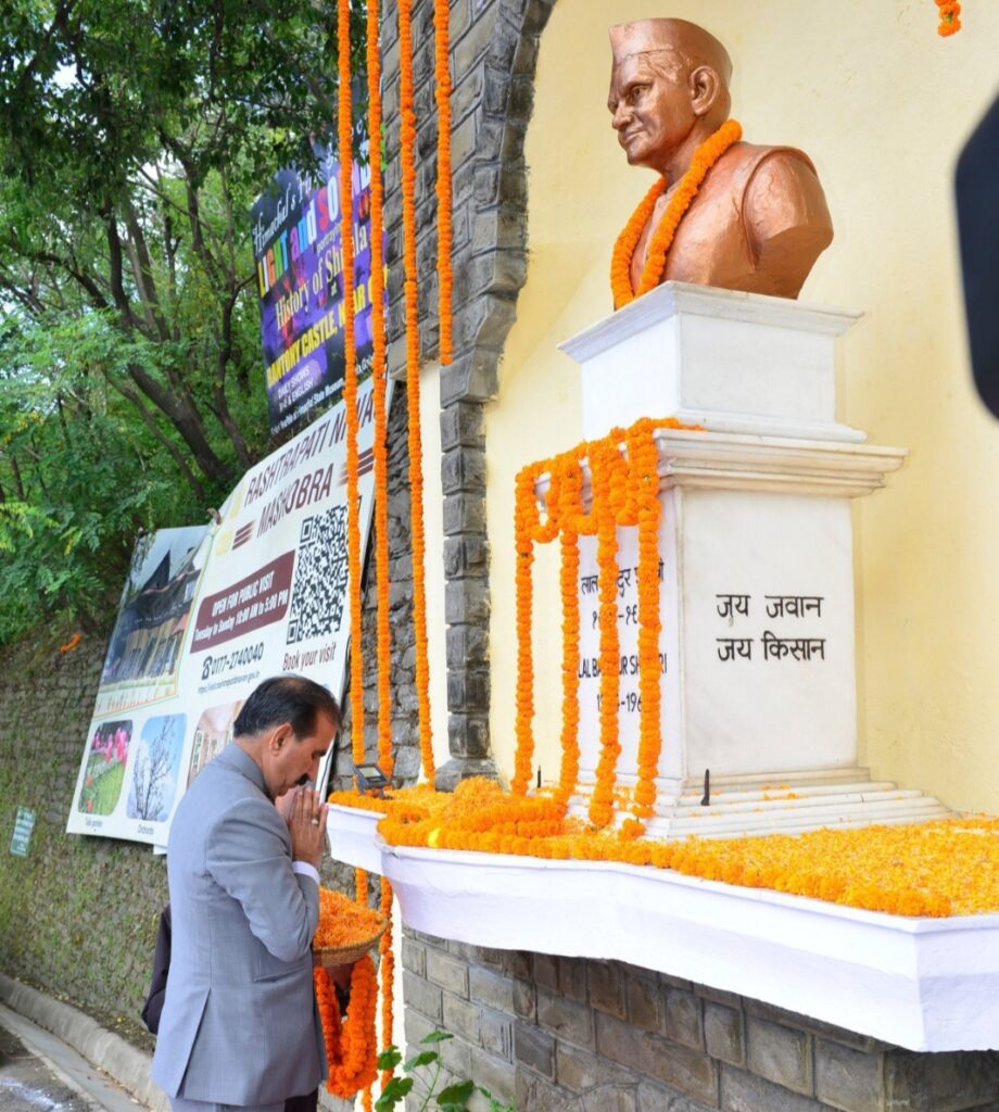 इसके बाद राज्यपाल और मुख्यमंत्री ने सीटीओ चौक में पूर्व प्रधानमंत्री लाल बहादुर शास्त्री जी को उनकी जयंती पर पुष्पांजलि अर्पित की।राज्यपाल ने कहा कि शास्त्री जी ने ‘जय जवान जय किसान’ का नारा देकर देश को आत्मनिर्भर बनने के लिए प्रेरित किया।उन्होंने कहा कि शास्त्री जी अखण्डता, मानवता और सादगी के पक्षधर थे जिस कारण वे सभी देशवासियों के लिए प्रेरणा स्रोत हैं।मुख्यमंत्री ने कहा कि जब देश में अनाज की कमी थी तब शास्त्री जी ने लोगों को आत्मनिर्भरता के प्रति प्रेरित करने के लिए जय जवान जय किसान का नारा दिया था।उन्होंने कहा कि शास्त्री जी सादगी का उत्कृष्ट उदाहरण थे जिन्होंने देश को कर्तव्यनिष्ठा का संदेश दिया।इस अवसर पर सूचना एवं जन सम्पर्क विभाग के कलाकारों द्वारा देश भक्ति गीत और भजन प्रस्तुत किए गए।शिक्षा मंत्री रोहित ठाकुर,मुख्य संसदीय सचिव संजय अवस्थी,स्थानीय विधायक हरीश जनारथा,महापौर नगर निगम शिमला सुरेंदर चौहान,उप महापौर उमा कौशल,मुख्यमंत्री के प्रधान निजी सचिव विवेक भाटिया,उपायुक्त,शिमला आदित्य नेगी,निदेशक सूचना एवं जन संपर्क राजीव शर्मा,आयुक्त नगर निगम शिमला भूपेन्द्र कुमार अत्री और बालिका आश्रम टूटीकंडी के छात्र और अन्य गणमान्य व्यक्ति भी इस अवसर पर उपस्थित थे।