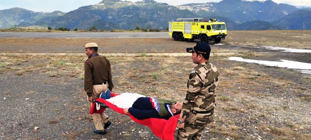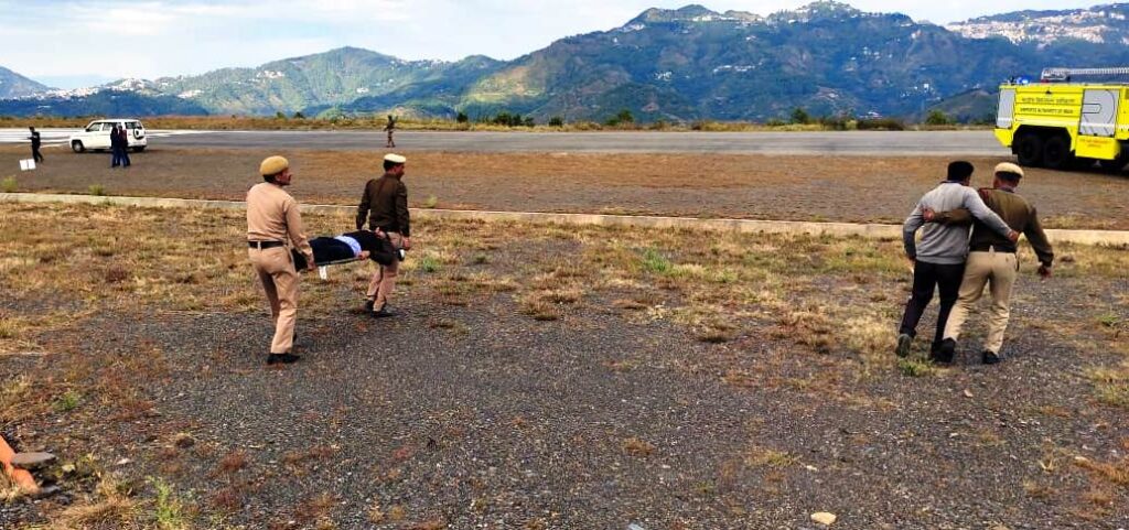 इससे पूर्व,उपायुक्त शिमला आदित्य नेगी और निदेशक, जब्बरहट्टी हवाई अड्डा धनपाल की उपस्थिति में जुब्बरहट्टी हवाई अड्डा पर विभिन्न विभागों के अधिकारीयों के साथ मॉक ड्रिल का आयोजन किया गया जिसमें हवाई जहाज की इमरजेंसी लैंडिंग होने की स्थिति में हुए हादसे से निपटने पर राहत एवं बचाव कार्य किया गया।इस दौरान अग्निशमन अधिकारीयों द्वारा जहाज में लगी आग पर काबू पाया गया,हादसे में घायल लोगों को ढूंढ़ने के लिए सर्च ऑपरेशन चलाया गया,हादसे में गंभीर घायलों को आईजीएमसी शिमला रेफेर किया गया तथा आंशिक रूप से घायलों का प्रथम उपचार किया गया।मॉक ड्रिल का आयोजन 17 मिनट में सफलतापूर्वक पूर्ण किया गया।