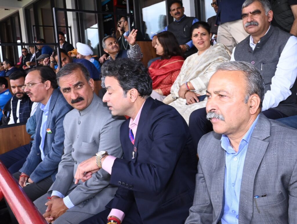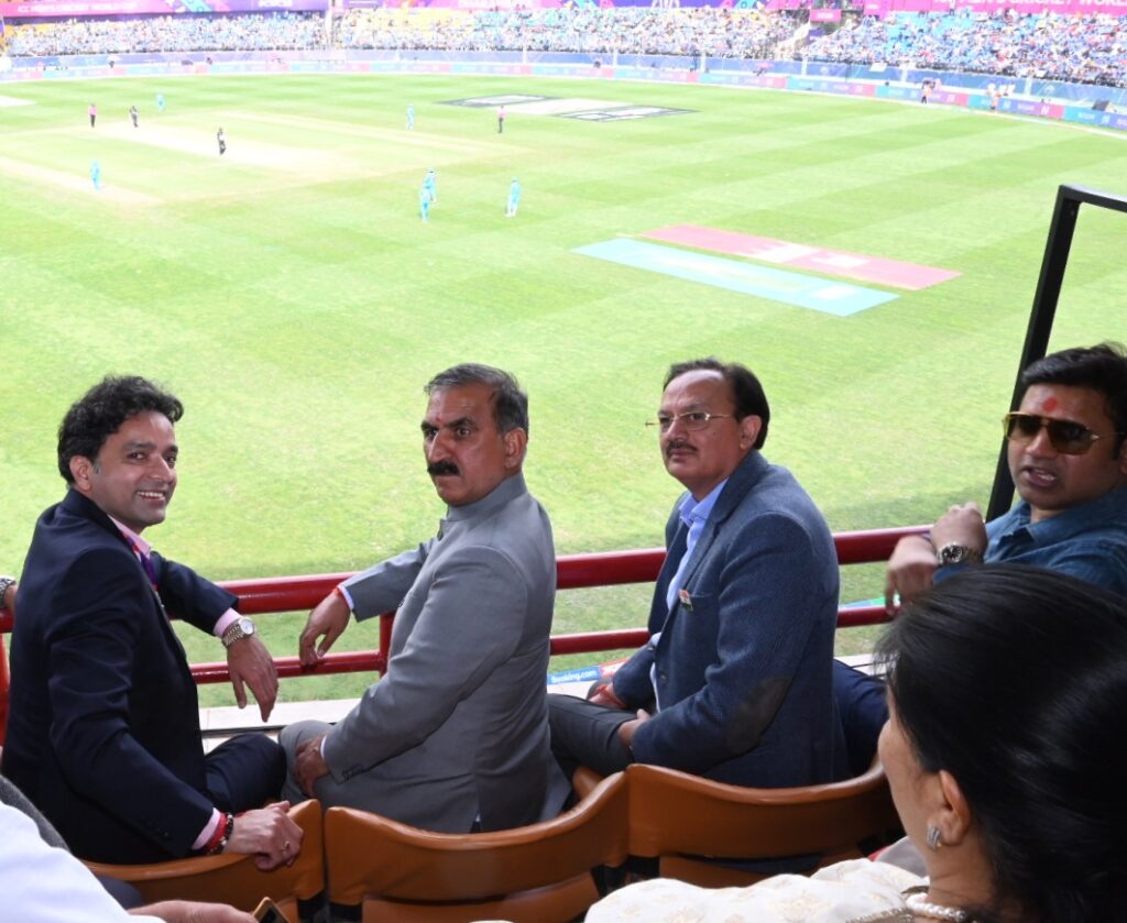 इसके बाद मुख्यमंत्री ने धर्मशाला क्रिकेट स्टेडियम में भारत और न्यूजीलैंड के मध्य खेले जा रहे विश्व कप क्रिकेट मैच का लुत्फ भी उठाया तथा भारतीय टीम का उत्साहवर्धन किया।इस अवसर पर कृषि मंत्री प्रो.चन्द्र कुमार,राज्य पर्यटन निगम के अध्यक्ष आर.एस. बाली,मुख्य संसदीय सचिव किशोरी लाल,विधायक केवल सिंह पठानिया,विधायक संजय रतन, विधायक मलेंद्र राजन,विधायक सुधीर शर्मा,कांगड़ा केंद्रीय सहकारी बैंक के अध्यक्ष कुलदीप पठानिया,राज्य कृषि विकास बैंक के अध्यक्ष संजय चौहान,पूर्व विधायक अजय महाजन तथा सुरिंदर काकू,कृषि बैंक के अध्यक्ष राम चंद पठानिया,जिला अध्यक्ष करण पठानिया, ब्लॉक कांग्रेस अध्यक्ष सुरजीत राणा और अन्य गणमान्य व्यक्ति भी उपस्थित थे।