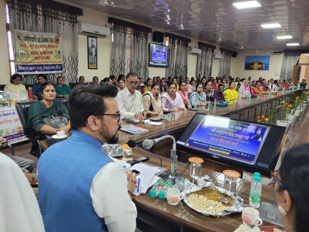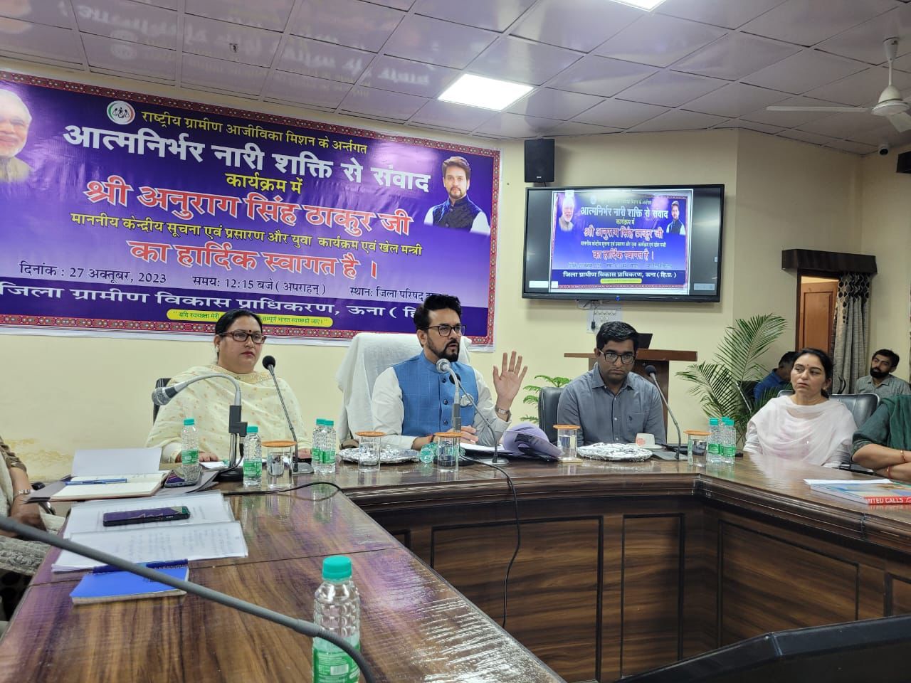 आज पूरी दुनिया अंतरराष्ट्रीय मिलेट वर्ष मना रही है।लेकिन हमारी माताएं बहने उसने भी एक कदम आगे बढ़कर अन्न से बेहतरीन बिस्किट,लड्डू,रागी की चाय समेत कई और उत्पाद बना रहीं हैं।मैंने आज सभी माता बहनों से विस्तार पूर्वक बात की है।मोदी सरकार ने राष्ट्रीय ग्रामीण आजीविका मिशन पर 9000 करोड़ से ज्यादा रुपए खर्च किए हैं।अगले दो वर्षों में हम इन सभी बहनों की आय दोगुनी करने का लक्ष्य लेकर चल रहे हैं।”श्री ठाकुर ने आगे स्वयं सहायता समूह की माता बहनों से वार्तालाप करते हुए उन्हें आत्मनिर्भर भारत के सपने को साकार करने में और आगे आने का अनुरोध करते हुए बेहद सार्थक परिचर्चा की। उन्होंने बहनों की सभी समस्याओं को ध्यानपूर्वक सुनते हुए सभी पर उचित कार्रवाई करने का आश्वासन दिया।इससे पूर्व केंद्रीय मंत्री ने ऊना भाजपा कार्यालय में चल रहे बीडीसी एवं जिला परिषद सदस्यों के प्रशिक्षण कार्यक्रम में भाग लेकर सभी सदस्यों को उनके पद की शपथ दिलाई।