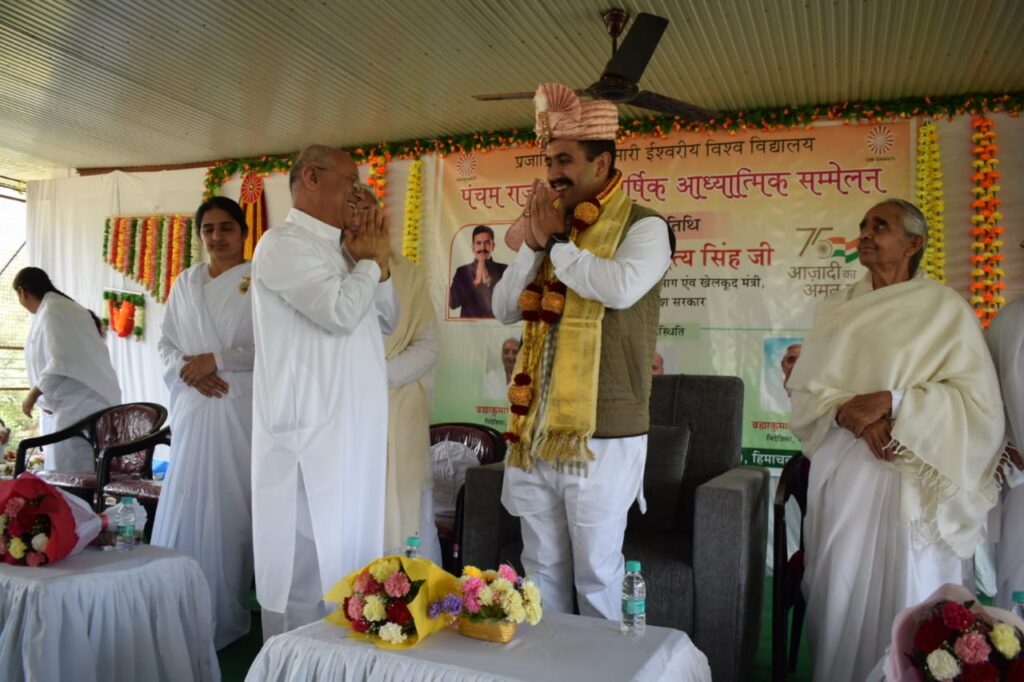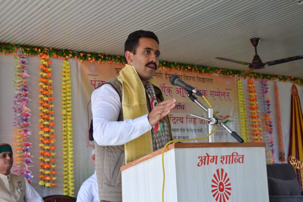 लोक निर्माण,युवा सेवाएं एवं खेल विभाग मंत्री विक्रमादित्य सिंह ने प्रजापिता ब्रह्माकुमारी ईश्वरीय विश्व विद्यालय द्वारा ब्रह्माकुमारी आश्रम सुन्नी में आयोजित पंचम राज्य स्तरीय वार्षिक आध्यात्मिक सम्मेलन की अध्यक्षता की।विक्रमादित्य सिंह ने अपने संबोधन में कहा कि संस्था द्वारा जनकल्याण का कार्य किया जा रहा है जो प्रदेश तथा देश की प्रगति में कारगर साबित होगा।उन्होंने कहा कि संस्था का हमेशा से ही विकासात्मक कार्यों के प्रति भी सहयोग रहा है।विकास को हर पैमाने से देखने की अवश्यकता है तभी विकसित राष्ट्र की कल्पना की जा सकती है।लोक निर्माण मंत्री ने कहा कि इसराइल और फिलिस्तीन मसले पर हमें दोनों दृष्टि से देखने की आवश्यकता है शांति के लिए दोनों ही पहलुओं का अध्ययन भी आवश्यक है।उन्होंने कहा कि इस तरह की संस्था देश तथा प्रदेश में शांति बनाए रखने के लिए अपना महत्वपूर्ण योगदान देते हैं तथा हमें इन संस्थाओं को मजबूत करने की आवश्यकता है।