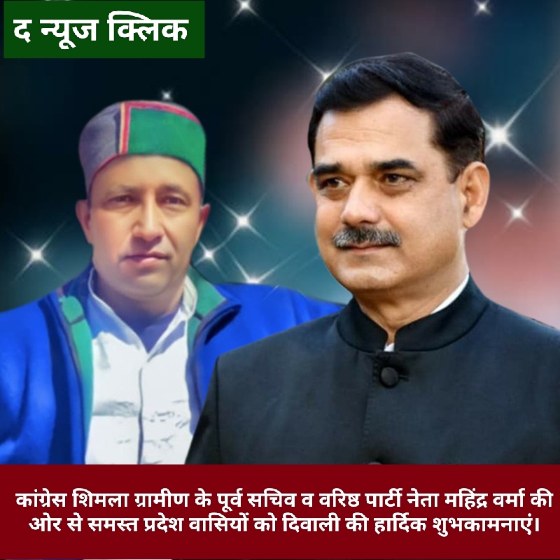 शिमला ग्रामीण के पूर्व सचिव व वरिष्ठ पार्टी नेता महिंद्र वर्मा ने हिमाचल वासियों को दिवाली की शुभकामनाएं दी हैं उन्होंने कहा कि खुशियों और रोशनी का ये पर्व सभी के जीवन में सुख शांति और समृद्धि लाए और हिमाचल प्रदेश विकास की राह पर निरंतर आगे बढ़ता रहे।