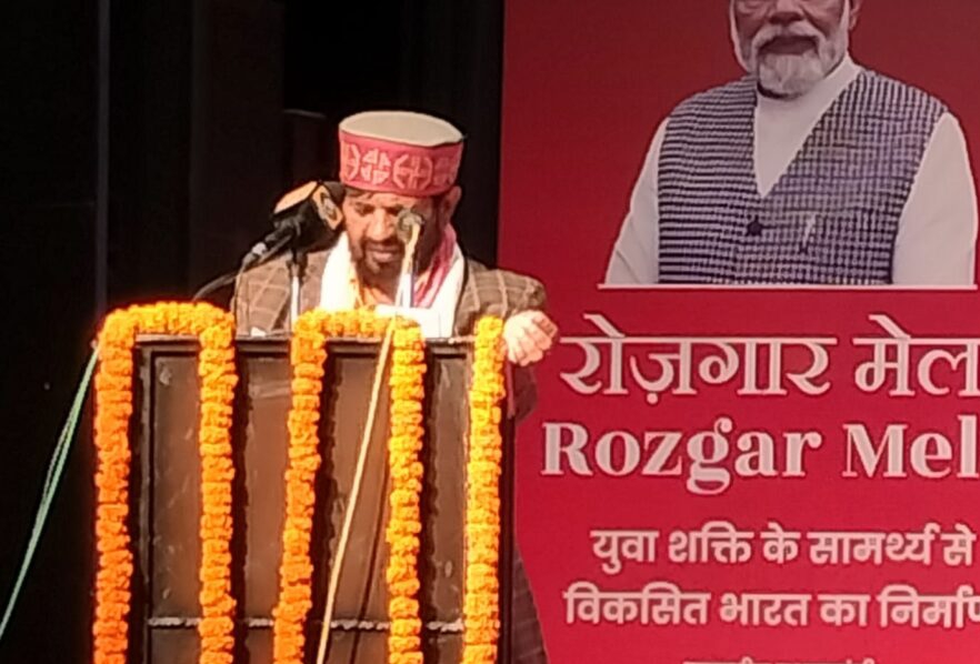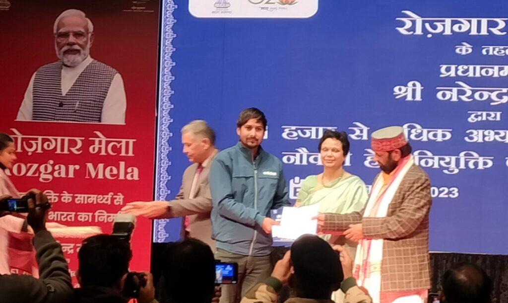 Shimla के गेयटी थियेटर में गुरुवार को प्रधानमंत्री की रोजगार सृजन योजना कार्यक्रम में शहरी कार्य मंत्रालय के राज्यमंत्री कौशल किशोर बतौर मुख्य अतिथि शामिल हुए।रोजगार मेले में 100 युवाओं को नियुक्ति पत्र सौंपे गए।