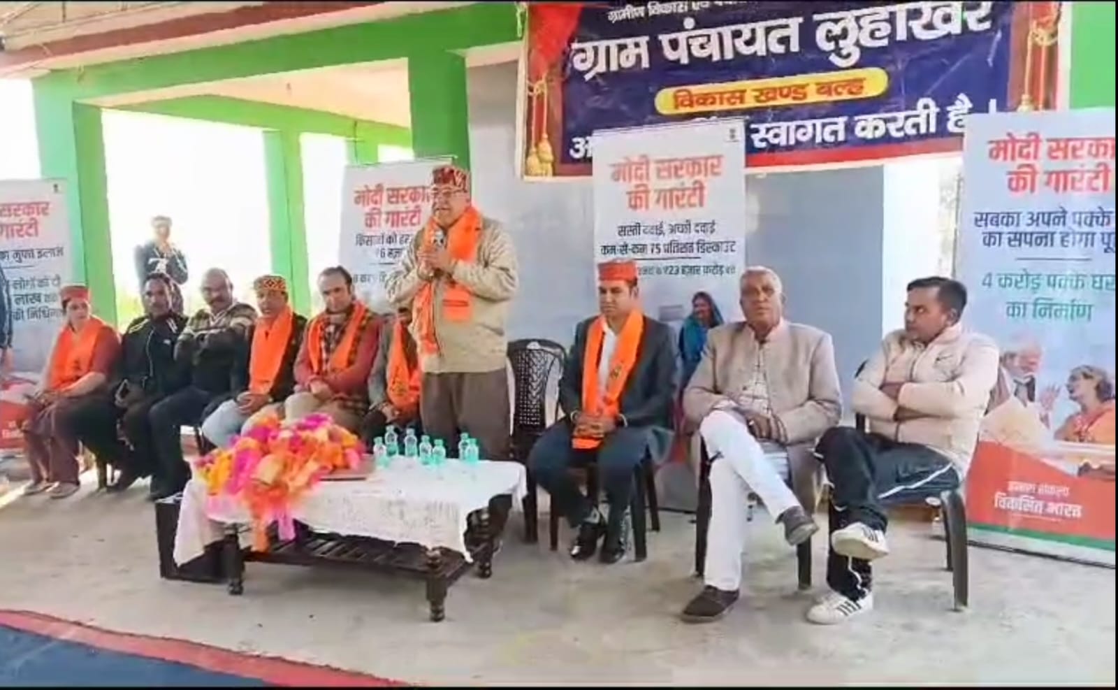 भाजपा प्रदेश प्रभारी अविनाश राय खन्ना ने बल्ह विधानसभा क्षेत्र के विकसित भारत संकल्प यात्रा के एक कार्यक्रम में भाग लिया उनके साथ विधायक इंदर सिंह गांधी भी उपस्थित रहे।भाजपा प्रभारी अविनाश राय खन्ना ने कहा पीएम मोदी की हर योजना गरीब की वेदना से निकली है।प्रधानमंत्री नरेंद्र मोदी ने गरीबों का दर्द समझा है और देश में चल रही एक-एक योजना गरीब कल्याण और जनकल्याण की दृष्टिकोण से बनाई है।मोदी की 17 प्रायोजित योजनाएँ सीधा सीधा जनता को पूर्ण लाभ देती है।आयुष्मान भारत पीएम.जे.ए.वाय,पीएम गरीब कल्याण अन्न योजना,दीनदयाल अंत्योदय योजना -राष्ट्रीय ग्रामीण आजीविका मिशन,पीएम आवास योजना (ग्रामीण)पीएम उज्ज्वला योजना,पी.एम.विश्वकर्मा,पीएम किसान सम्मान,किसान क्रेडिट कार्ड (केसीसी)पीएम पोषण अभियान,हर घर जल -जल जीवन मिशन,गांवों का सर्वेक्षण और ग्रामीण क्षेत्रों में तात्कालिक प्रौद्योगिकी के साथ मानचित्रण (स्वामित्व)जन धन योजना,जीवन ज्योति बीमा योजना,सुरक्षा बीमा योजना,अटल पेंशन योजना,पीएम प्रणाम और नैनो फर्टिलाइजर।उन्होंने कहा कि वर्तमान से पहले किसी भी राजनीतिक दल ने इस प्रकार की परियोजनाओं के बारे में नहीं सोचा।खन्ना ने कहा की मोदी सरकार रिपोर्ट कार्ड वाली सरकार है,प्रधानमंत्री नरेंद्र मोदी ने देश की राजनीति में बड़ा बदलाव लाया है,अब वही सरकार एक बार फिर सरकार बना सकती है जो अपना रिपोर्ट कार्ड सकारात्मक रूप से जनता के बीच रखती है,प्रधानमंत्री नरेंद्र मोदी और भारतीय जनता पार्टी ने पूरे देश भर में अपना रिपोर्ट कार्ड जनता के समक्ष रखा है।भारतीय जनता पार्टी जो कहती है वह करके दिखाती है क्योंकि इस पार्टी के प्रधानमंत्री में दम है।आरोप लगाया कि कांग्रेस ने हमेशा झूठ की राजनीति की है और झूठ बोल कर ही सरकारों को बनाने का कार्य किया है।
