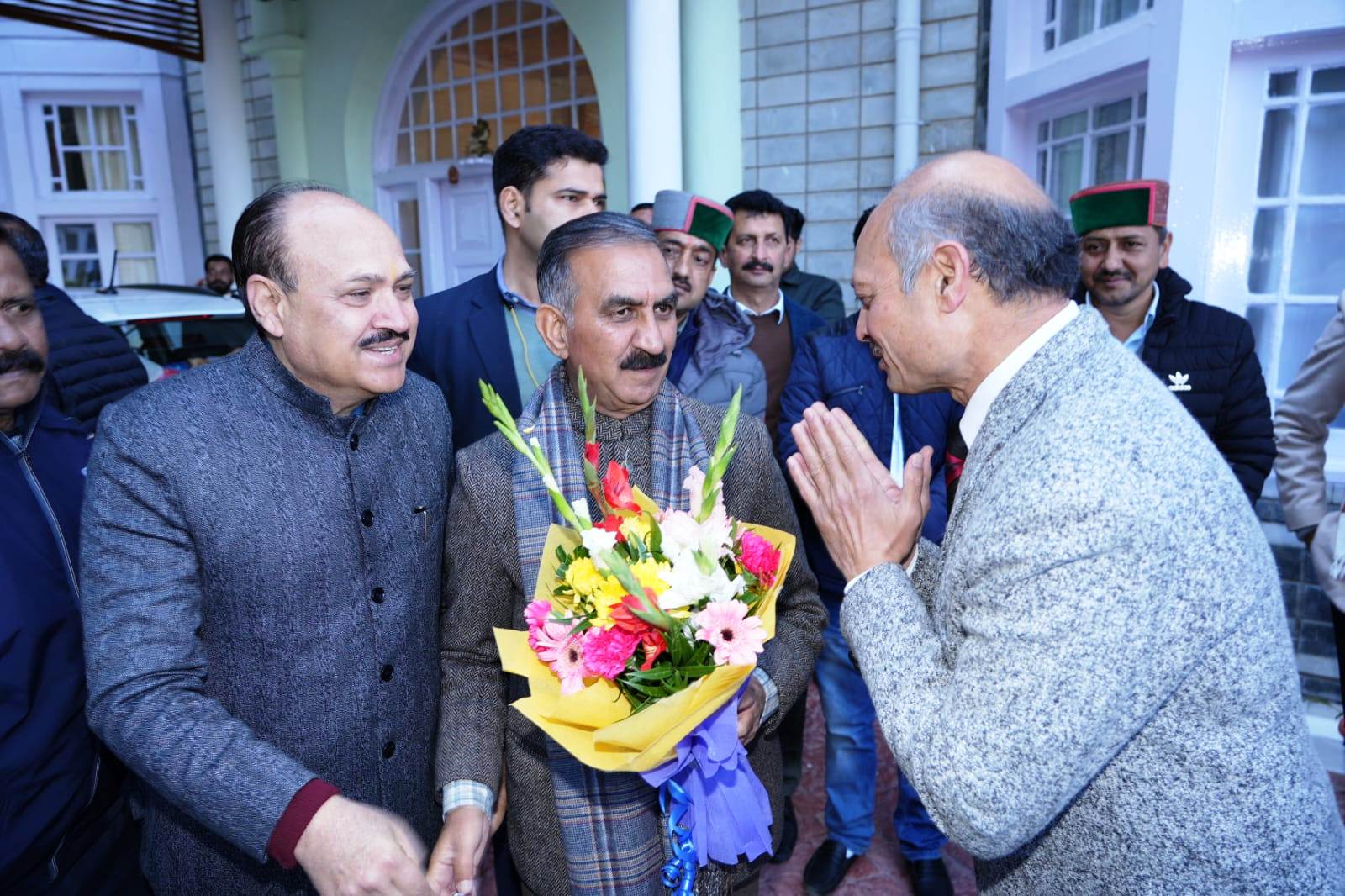 The People from different walks of life made a bee line to ‘Oak Over’,the official residence of the Chief Minister Thakur Sukhvinder Singh Sukhu since early morning to extend good wishes to him on the New Year.Besides his cabinet colleagues,Union Ministers and Chief Ministers of various States, former Chief Ministers,MLAs,Chairmen and Vice Chairmen of various Boards and Corporations,senior party leaders, bureaucrats,heads of Departments and other senior officers wished the Chief Minister on the occasion.