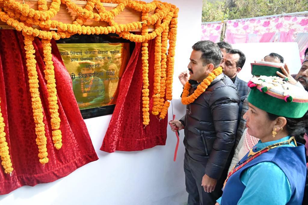 Shimla:लोक निर्माण,युवा सेवाएं व खेल मंत्री विक्रमादित्य सिंह आज शिमला ग्रामीण विधानसभा क्षेत्र के अंतर्गत थाची पंचायत के प्रवास पर रहे जहाँ पर उन्होंने लगभग 5 करोड़ रूपए की लागत से बनने वाली परियोजनाओं के उद्घाटन एवं शिलान्यास किये जिसमे 2 करोड़ 30 लाख रुपए की लागत से बनने वाले राजकीय वरिष्ठ माध्यमिक विद्यालय चलाहल (थाची) के भवन का शिलान्यास और 2 करोड़ 25 लाख की लागत से निर्मित कोटला भजोल उठाऊ सिंचाई परियोजना का उद्घाटन शामिल है।उन्होंने कहा कि कोटला भजोल उठाऊ सिंचाई परियोजना में जो भी कमी रह रही है उसे भी जल्द दूर करवाया जायेगा।उन्होंने कहा कि क्षेत्र में 33 करोड़ रुपए के विकास कार्य करवाए जा रहे हैं।
