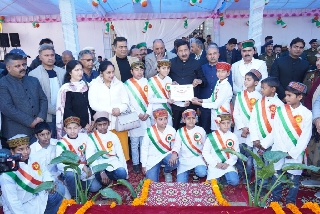75वां गणतंत्र दिवस हमीरपुर में भी हर्षोल्लास के साथ मनाया गया।ब्वायज सीनियर सेकेंडरी स्कूल हमीरपुर के मैदान में आयोजित जिला स्तरीय समारोह में उपमुख्यमंत्री मुकेश अग्निहोत्री ने राष्ट्रीय ध्वज फहराया तथा भव्य परेड की सलामी ली।परेड कमांडर एसआई रीतू की अगुवाई में आयोजित परेड में पुलिस,होमगार्ड्स,एनसीसी,एनएसएस, स्काउट एंड गाइड्स,विभिन्न शिक्षण संस्थानों और स्वास्थ्य कर्मियों की प्लाटूनों ने शानदार मार्चपास्ट किया।इस अवसर पर सभी जिलावासियों को बधाई देते हुए मुकेश अग्निहोत्री ने कहा कि 26 जनवरी हम सभी देशवासियों के लिए एक ऐतिहासिक दिन है।इस दिन ही हमारा देश विश्वभर में सबसे बड़े लोकतांत्रिक गणराज्य के रूप में स्थापित हुआ।
