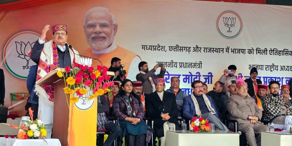 उन्होंने कहा कि प्रदेश में सुक्खू सरकार बैक गियर सरकार साबित हुई है।भाजपा सरकार के समय खोले गए 620 सरकारी दफ्तर,286 स्कूल व 19 काॅलेज इस सरकार ने बंद कर दिए।पूर्व जयराम सरकार के समय शुरू हिमकेयर योजना के 200 करोड़ रुपए लटका दिए।कांग्रेस की चुनावी गारंटियां झूठ साबित हुई हैं। हिमाचल के लोग झूठे वायदों पर भरोसा कर गलती कर बैठे।जेपी नड्डा ने नाम लिए बिना कहा कि आपदा के बाद उन्होंने,पार्टी सांसदों व नेताओं ने आपदाग्रस्त इलाकों का दौरा कर प्रभावितों का दुख-दर्द जाना,प्रधानमंत्री मोदी और गृह मंत्री अमित शाह को हालात बताकर विशेष राहत दिलवाई लेकिन राहुल व प्रियंका गांधी एक बार भी आपदा प्रभावित क्षेत्रों में नहीं गए।जेपी नड्डा ने कहा कि काठ की हांडी बार-बार नहीं चढ़ती है।भाजपा अध्यक्ष ने हिमाचल में केंद्र द्वारा चलाई योजनाओं व एम्स सहित खोले अन्य बड़े संस्थानों का जिक्र कर कहा कि मोदी सरकार ने प्रदेश के विकास में कोई कसर नहीं छोड़ी है।उन्होंने जातिगत जनगणना,क्षेत्रवाद व परिवारवाद को लेकर भी कांग्रेस को जमकर घेरा।उन्होंने मोदी सरकार की उपलब्धियों का जिक्र करते हुए कहा कि आज भारत में घोटालों की नहीं बल्कि रिपोर्ट कार्ड की राजनीति है,केंद्र सरकार ने जो वायदा किया,उसे निभाया है।