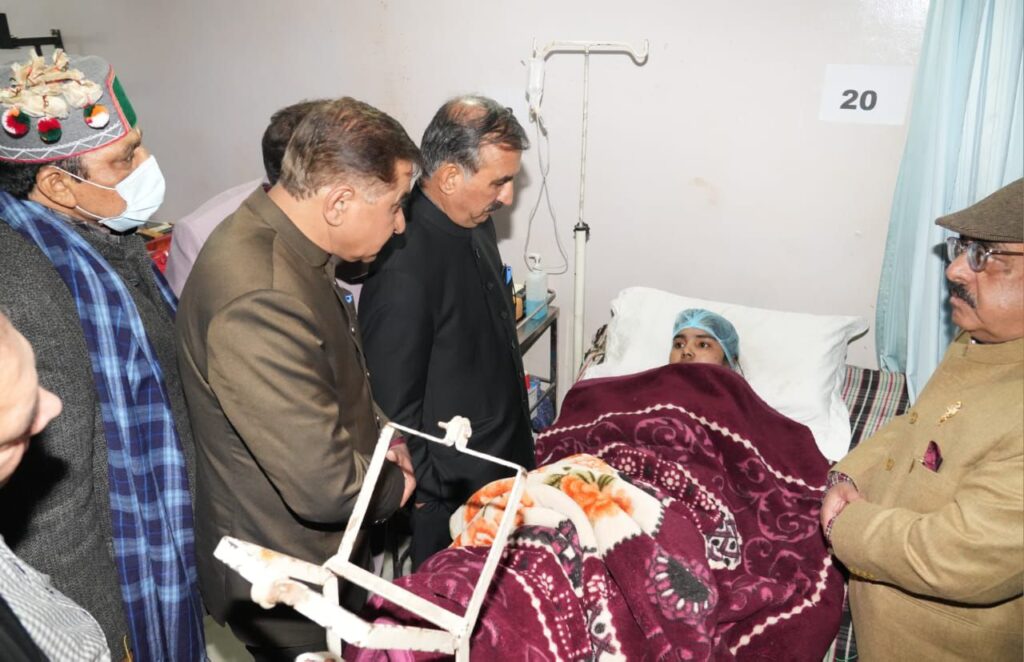 ठाकुर सुखविंदर सिंह सुक्खू ने कहा कि इस दुर्भाग्यपूर्ण घटना में 5 लोगों की मौत हुई है।एक शव की पहचान की जा रही है,जबकि पांच व्यक्ति अभी भी लापता हैं।उन्होंने कहा कि इस घटना में 37 व्यक्ति घायल हुए थे,जिनमें से 13 घायलों को उपचार के बाद अस्पताल से छुट्टी मिल गई है।अब तक प्रभावित परिवारों को 3.05 लाख रुपए की राहत राशि प्रदान की जा चुकी है।ठाकुर सुखविंदर सिंह सुक्खू ने अस्पताल में उपचाराधीन घायलों का कुशलक्षेम पूछा और उनसे हादसे के बारे में जानकारी प्राप्त की।मुख्यमंत्री ने उन्हें प्रदेश सरकार की ओर से हर संभव सहायता का आश्वासन दिया।इस अवसर पर स्वास्थ्य एवं परिवार कल्याण मंत्री डॉ.(कर्नल)धनी राम शांडिल,मुख्य संसदीय सचिव चौधरी राम कुमार,विधायक के.एल.ठाकुर,उपायुक्त मनमोहन शर्मा सहित अन्य गणमान्य तथा अधिकारी उपस्थित थे।