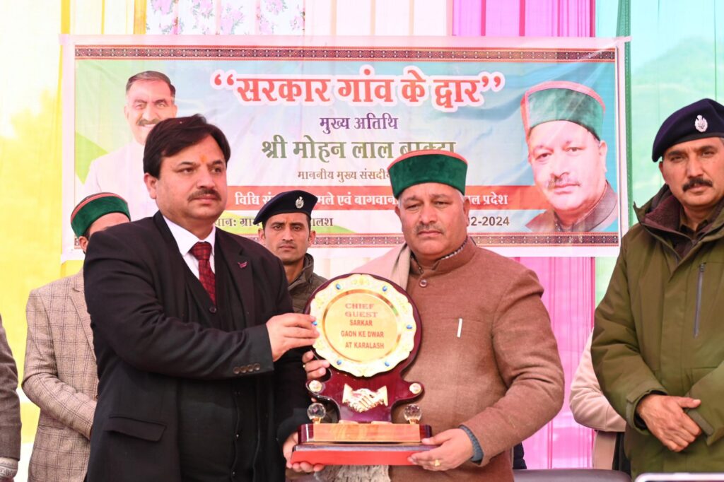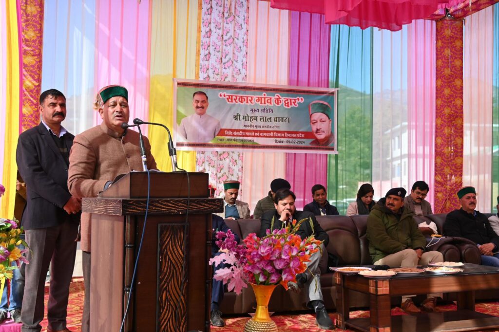 मुख्य संसदीय सचिव विधि,संसदीय कार्य एवं बागवानी विभाग मोहन लाल ब्राक्टा ने रोहड़ू विधानसभा क्षेत्र के अंतर्गत ग्राम पंचायत करालश में आयोजित सरकार गांव के द्वार कार्यक्रम की अध्यक्षता की।सरकार गांव के द्वार कार्यक्रम में लगभग 30 समस्याएं प्राप्त हुई।मुख्य संसदीय सचिव ने इस अवसर पर अपने संबोधन में कहा कि ‘सरकार गांव के द्वार’ कार्यक्रम प्रदेश सरकार का महत्वाकांक्षी कार्यक्रम है जिसके अंतर्गत सरकार द्वारा प्रशासन के सहयोग से लोगों की समस्याओं का घर द्वार पर निदान किया जाता है।करालश में आयोजित कार्यक्रम में अधिकतर समस्याओं का निपटारा किया गया है तथा अन्य समस्याओं को समयबद्ध तरीके से संबंधित अधिकारियों को निपटारा करने के निर्देश दिए है ताकि आम जन मानस को किसी प्रकार की असुविधा का सामना न करना पड़े।