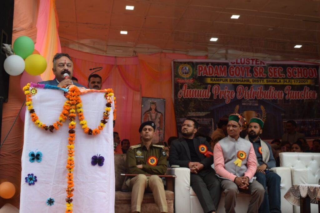 उन्होनें स्कूल में वर्दी के लिए भी एसएमसी को अपने इच्छा से रखने के लिए स्वतन्त्र किया है ताकि सरकारी स्कूल के बच्चें भी अपने पसंद की वर्दी पहन सके और अन्य निजी स्कूलों के भांति अपने को महसूस कर सके ।शिक्षा मन्त्री ने कहा कि वर्तमान प्रदेश सरकार स्कूलों में खाली पदो के भरने के लिए 2252 पद् बेज आधार पर व 585 पद् सीधी भर्ती के माध्यम से भर रही है और शीघ्र ही स्कूलों में अध्यापको की कमी को पूरा किया जाएगा ।इससे पूर्व स्थानीय विधायक रामपुर नन्द लाल ने अपने सम्बोधन में कहा कि त्रास्दी के बाद भी वर्तमान प्रदेश सरकार ने विकास में कोई कमी नहीं रखा है और मुख्य मन्त्री व शिक्षा मन्त्री का उनके विधान सभा क्षेत्र में दो साईस ब्लॉक स्वीकृत कर उनका शिलान्यस करने पर विशेष आभार प्रकट किया।रोहित ठाकुर ने स्कूल के विभिन्न गतिविधियों में अव्वल रहने वाले बच्चों को पुरस्कृत भी किया व उनकें उच्च भविष्य की कामना भी की।इस मौके पर पाठशाला के बच्चों द्वारा रंगारंग कार्यक्रम भी प्रस्तुत किये गये।शिक्षा मंत्री ने रामपुर में लोगों की समस्याएं सुनी व इसके शीघ्र निदान की आश्वासन भी दिया।इस असवर पर उप-मण्डलाधिकारी रामपुर निशान्त तोमर,उप-निदेशक उच्च शिक्षा व विभिन्न विभागों के अधिकारी व पंचायती राज के जनप्रतिनिधी उपस्थित थे।