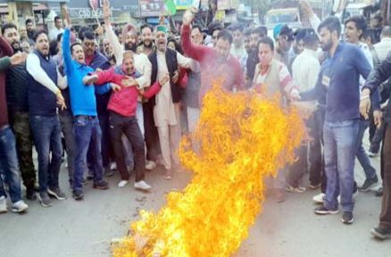 Una:जिला मुख्यालय में कांग्रेस कार्यकताओं ने बागी विधायकों के खिलाफ जमकर विरोध प्रदर्शन किया।शुक्रवार को लोक निर्माण विभाग के विश्रामगृह में कांग्रेस के कार्यकर्ता एकत्रित हुए।इस दौरान उन्होंने कुटलैहड़ के पूर्व विधायक दविन्द्र भुट्टो और गगरेट के पूर्व विधायक चैतन्य शर्मा के खिलाफ जमकर नारेबाजी करते हुए विरोध रैली निकाली और रोटरी चौक पर उनका पुतला फूंका।इस मौके पर ब्लॉक कांग्रेस अध्यक्ष रविन्द्र सहोड़ ने कहा कि इन सभी 6 पूर्व विधायकों द्वारा पार्टी से गद्दारी की गई है और विधानसभा अध्यक्ष द्वारा की गई कार्यवाही बिल्कुल सही है। पार्टी से धोखा करने वालों को पार्टी में रहने का कोई अधिकार नहीं।इस मौके पर शिव कुमार,शिव सैनी,रवि बस्सी,रोहित सहोड़,मार्शल,तनु शर्मा,गुरजीत मान,चांद ठाकुर,विक्की सैनी,सीमा शर्मा,सुख सैनी,संजीव कंवर, वरुण पुरी,मुकेश चौधरी,लाड़ी सैनी,राघव पुरी,अंकुश शर्मा,विवेक मिंका,प्रदीप रत्न भारद्वाज,कुमार गौरव,विजय राजपूत,रविन्द्र रामपुर व मयंक खन्ना मौजूद रहे।