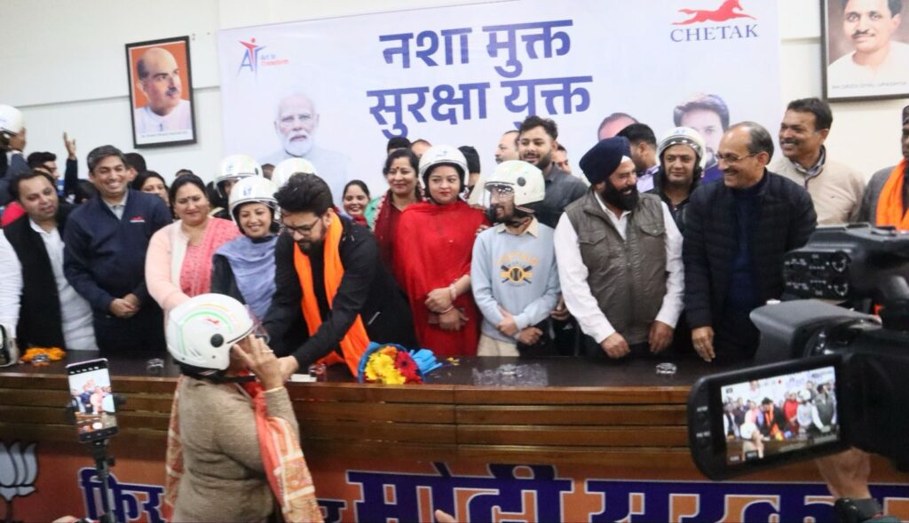केंद्रीय सूचना एवं प्रसारण और युवा एवं खेल मामलों के मंत्री अनुराग सिंह ठाकुर ने ऊना जिला भाजपा कार्यालय से युवाओं में नशे के प्रभाव को रोकने के लिए नशा मुक्त,सुरक्षा युक्त कैम्पेन को लाँच किया और हेलमेट वितरण कर बाइक रैली को हरी झंडी दिखाई।अनुराग ठाकुर ने कहा देश के विकास में युवाओं की भागीदारी सबसे अहम है,मगर ऐसा देखा जा रहा है कि कुछ युवा साथी नशे की चपेट में आकर अपना भविष्य तो ख़राब कर ही रहे हैं,देश के विकास में भी अपना कोई योगदान नहीं दे पा रहे हैं।प्रधानमंत्री नरेन्द्र मोदी ने भी युवाओं को नशे से दूर रहने का अहवान किया है ताकि वो विकसित भारत निर्माण में अपनी भागीदारी सुनिश्चित कर सकें।इसी को दृष्टिगत रखते हुए आज नशा मुक्त,सुरक्षा युक्त कैम्पेन की शुरुआत की है ताकि युवाओं को नशे के दुष्प्रभाव से जागरूक किया जा सके।अनुराग ठाकुर ने कहा कि यहां उपस्थित सभी युवा भारतीय जनता युवा मोर्चा के कार्यकर्ता नहीं हैं बल्कि समाज में नशा मुक्ति के ब्रांड एंबेसेडर भी हैं। अनुराग ठाकुर ने कहा कि नशा अंदर ही अंदर हमारे युवकों और युवतियों को खा रहा है।इसके खात्मे के लिए समाज,परिवार और हम सभी को एक साथ आगे आने की जरूरत है। उन्होंने कहा कि आपका जन प्रतिनिधि होने के नाते मैंने इसके प्रति जागरूकता फैलाने का निर्णय लिया है। हम सभी लोगों को एक साथ लेंगे और हिमाचल को सुरक्षित और नशा मुक्त बनाएंगे।बाइक रैली के दौरान सभा को संबोधित करते हुए अनुराग ठाकुर ने लोगों से हेलमेट के प्रति जागरूक होने को भी कहा।