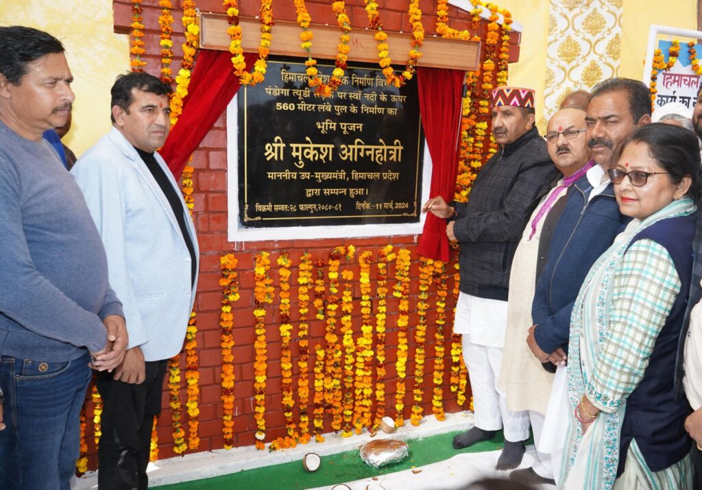उप मुख्यमंत्री ने कहा कि हिमाचल प्रदेश में सबसे लम्बा पुल हरोली विस क्षेत्र में है।इसी कड़ी में दूसरा पुल जोकि लगभग 51 करोड़ रूपये की लागत से पंडोगा से त्यूड़ी तक बनाया जाएगा जिसका विधिवत रूप से भूमिपूजन कर दिया गया है।उन्होंने कहा कि इस पुल के निर्मित होने से हरोली और कुटलैहड़ विधानसभा क्षेत्र के लोगों को लाभ मिलेगा तथा क्षेत्र विकास के लिए यह पुल मील का पत्थर साबित होगा।उन्होंने बताया कि यह पुल लगभग एक से दो वर्ष में बनकर तैयार हो जाएगा तथा लगभग आसपास की 15 पंचायतों को लाभ मिलेगा और लोगों के समय में बचत के साथ-साथ दूरी भी कम होगी।उन्होंने कहा कि हरोली विस क्षेत्र में लोगों को सभी मूलभूत सुविधाएं प्राथमिकता के आधार पर उपलब्ध करवाई जा रही है ताकि क्षेत्र की जनता को किसी प्रकार की समस्या का सामना न करना पड़ें।मुकेश अग्निहोत्री ने कहा कि हरोली शिक्षा का हब बन चुका है।हरोली के बच्चों को उच्च शिक्षा ग्रहण करने के लिए क्षेत्र में ही तीन राजकीय महाविद्यालय खोले गए हैं।हरोली कॉलेज के भवन का निर्माण कार्य तीव्र गति से किया जा रहा है।क्षेत्र में ट्रिपल आईटी,केंद्रीय विद्यायल तथा दो आईटीआई भी खोली गई हैं।यहां बच्चों को बेहतरीन गुणात्मक शिक्षा प्रदान की जा रही है तथा इन संस्थानों से शिक्षा ग्रहण करने वाले बच्चें प्रदेश व देश के बड़े-बड़े संस्थानों में अपनी सेवाएं दे रहे हैं।उन्होंने बताया कि हरोली में बस अडडा व सर्किट हाऊस बनाया जा रहा है।इसके साथ ही पशुओं की स्वास्थ्य की देखभाल के लिए एक बड़ा संस्थान बनाने की प्रक्रिया भी जारी है।उप मुख्यमंत्री मुकेश अग्निहोत्री ने कहा कि हरोली अस्पताल में मरीजों को बेहतर सुविधा मिल सके।इसके लिए अस्पताल की 50 बैड की क्षमता को बढ़ाकर 100 बैड कर दिया गया है।इसके अलावा उन्होंने बताया कि हरोली उत्सव को भी राज्य स्तरीय उत्सव का दर्जा भी प्रदान किया गया है।