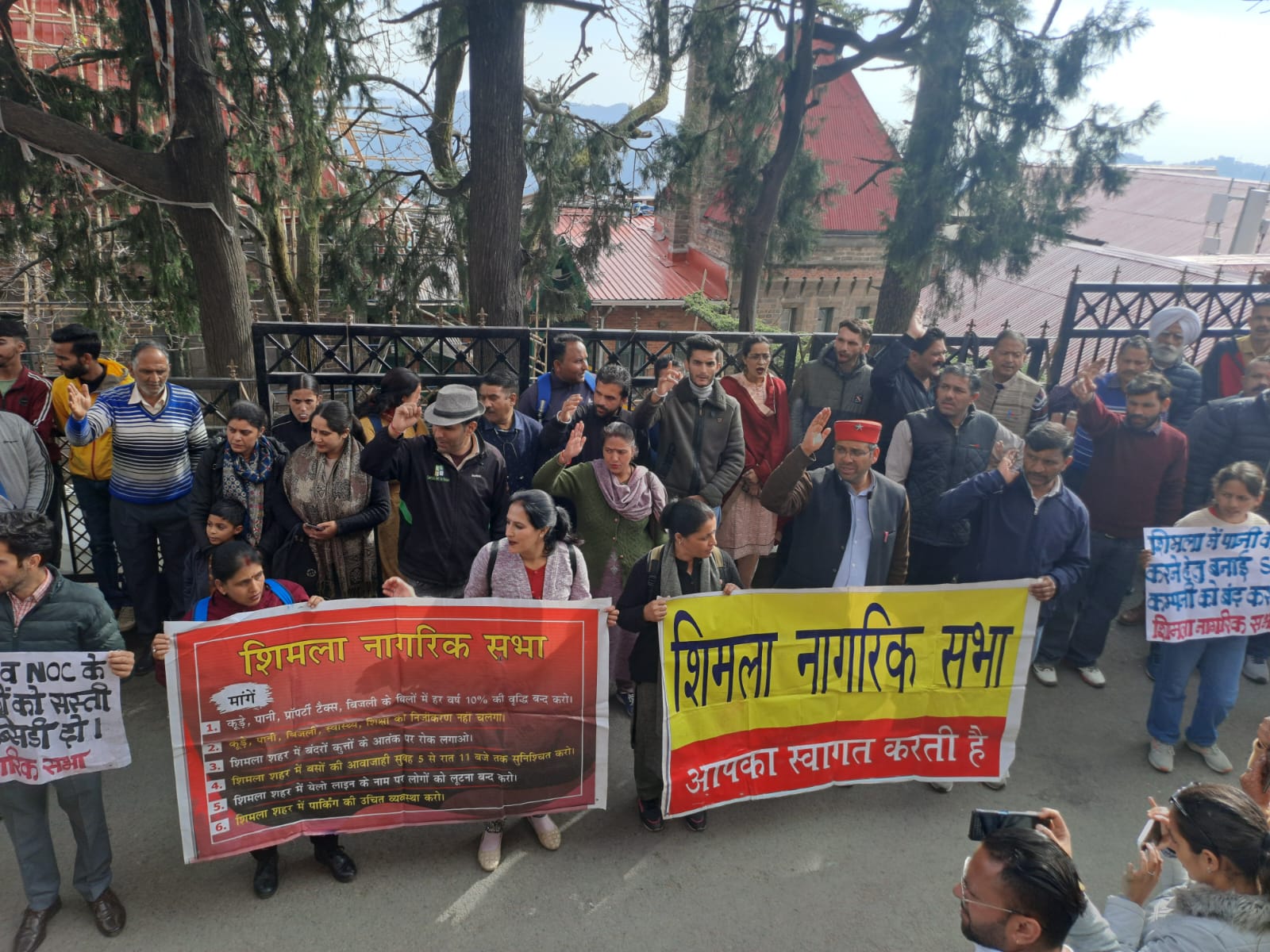 राजधानी शिमला में पानी,कूड़ा और प्रॉपर्टी टैक्स की दरों में वृद्धि करने के प्रस्ताव पर शिमला नागरिक सभा भड़क गई है।नागरिक सभा ने विरोध स्वरूप शिमला उपायुक्त कार्यालय के बाहर प्रदर्शन भी किया।नागरिक सभा के संयोजक संजय चौहान ने बताया कि शहर के लोगों को मिलने वाली बुनियादी सुविधाओं में आर्थिक बोझ डालना किसी भी सूरत में बर्दाश्त नहीं किया जाएगा।सभा के सैकड़ों कार्यकर्ता उपायुक्त कार्यालय के बाहर इकट्ठा हुए।इस दौरान उन्होंने पानी,कूड़ा और प्रॉपर्टी टैक्स की दर में 10 फीसदी की वृद्धि का विरोध कर नारेबाजी की।