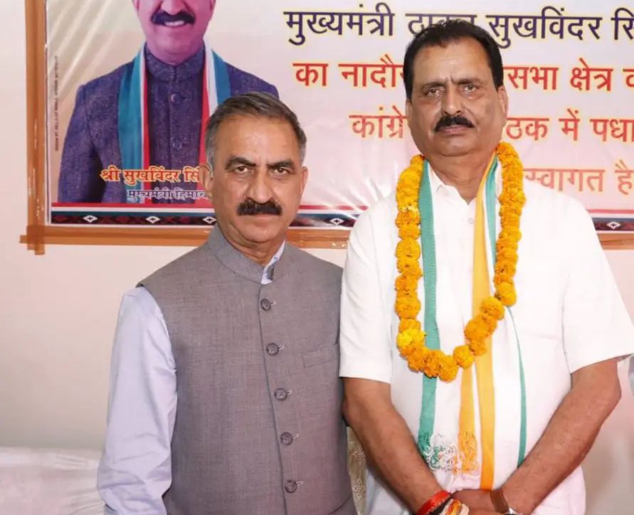 प्रभात चौधरी ने अपने पैतृक गांव बड़ा में मुख्यमंत्री की जनसभा में कांग्रेस का दामन थामा।वह दो बार नादौन विधानसभा क्षेत्र से चुनाव लड़ चुके हैं।पहली बार उन्होंने 2003 में निर्दलीय और 2007 में बसपा टिकट पर विधानसभा चुनाव लड़ा था।दोनों बार उन्होंने 10 हजार वोट लिए थे।इसके बाद उन्होंने चुनाव नहीं लड़ा और भाजपा में शामिल हो गए।पूर्व शिक्षा मंत्री नारायण चंद पराशर के समय प्रभात कांग्रेस में ही हुआ करते थे।उसके बाद उन्होंने निर्दलीय चुनाव लड़ लिया।अब मुख्यमंत्री ठाकुर सुखविंदर सिंह ने उनकी घर वापसी करवाई है।प्रभात के भाजपा छोड़ने से कांग्रेस को नादौन में और मजबूती मिलेगी।उन्होंने कांग्रेस में शामिल होने के बाद कहा कि वह पूरी निष्ठा के साथ कार्य करेंगे।उन्होंने मुख्यमंत्री के कार्यों और नीतियों में आस्था जताते हुए कांग्रेस का दामन थामा है।पूर्व बूथ अध्यक्ष हंसराज ने कहा कि सुखविंदर सिंह सुक्खू जबसे मुख्यमंत्री बने हैं तबसे उन्होंने आम आदमी को मद्देनजर रखकर काम किया है।मुख्यमंत्री ने कहा कि कांग्रेस में आए सभी भाजपाइयों को पूरा मान सम्मान मिलेगा।