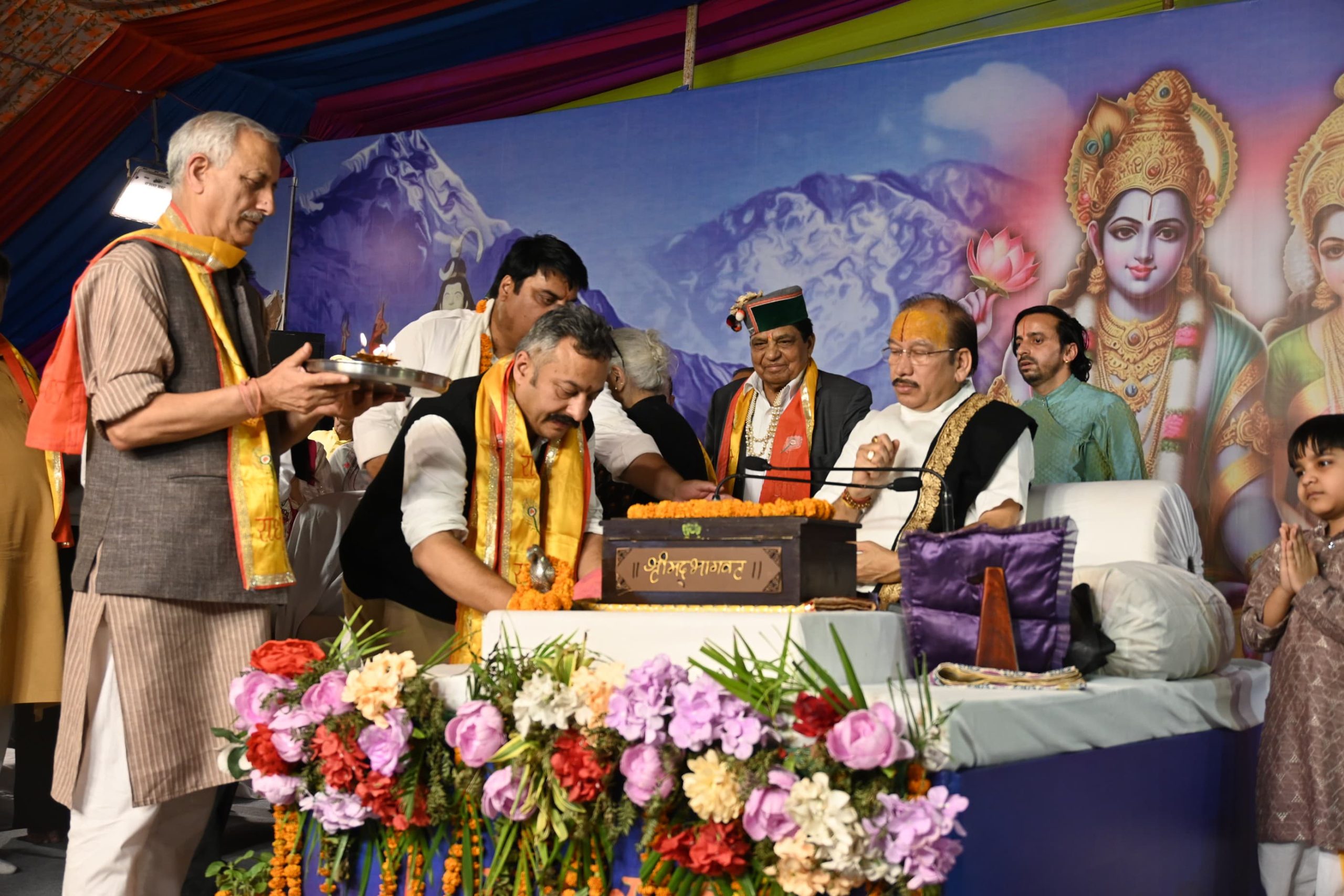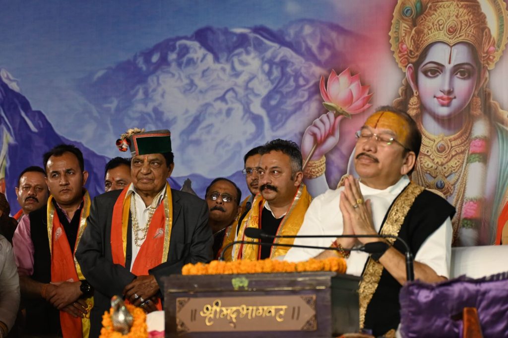 स्वास्थ्य एवं परिवार कल्याण,सामाजिक न्याय एवं अधिकारिता तथा सैनिक कल्याण मंत्री कर्नल (डॉ) धनीराम शांडिल एवं शिक्षा मंत्री रोहित ठाकुर ने चैपाल विधानसभा क्षेत्र के अंतर्गत ननाहर पंचायत के गांव मलकौत (कलून) में आयोजित श्रीमद् भागवत कथा में शिरकत की।उन्होंने लोगों के साथ पंडाल में बैठकर श्रीमद् भागवत कथा को सुना तथा शीश नवाकर आशीर्वाद प्राप्त किया।