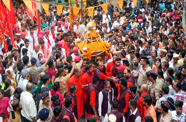 राज्य स्तरीय तीन दिवसीय मां शूलिनी मेला शुक्रवार को पूजा-अर्चना के बाद मां की शोभायात्रा के साथ शुरू हो गया। अब मां शूलिनी यहां के गंज बाजार स्थित अपनी बहन श्री शूलिनी पीठम के मंदिर में अगले दो दिनों तक रुकेंगी।इन तीन दिनों तक सोलन शहर में उत्सव का माहौल रहेगा।मेले के प्रथम दिन 11 बजे मंदिर में मां की पूजा-अर्चना की गई। करीब डेढ़ बजे मां की शोभायात्रा मंदिर परिसर से निकली। शोभायात्रा के दौरान विभिन्न झांकियों ने सभी को मोहित किया।इस बार मां शूलिनी की शोभायात्रा के साथ गणेश, माखनचोर,शिव व मां काली,हनुमान,भगवान राम, राधाकृष्ण सहित अन्य झांकियां मुख्य रूप से शामिल रहीं। इस दौरान पहाड़ी वाद्य यंत्र,बैंडबाजे के अतिरिक्त विशेष ढोलियों की टीमों ने शोभायात्रा को चार चांद लगा दिए।मां शूलिनी की शोभायात्रा के दौरान लाखों की संख्या में श्रद्धालुओं ने मां के दर्शन किए।शोभायात्रा करीब अढ़ाई बजे पुरानी कचहरी के पास पहुंची।यहां पर स्वास्थ्य मंत्री डाॅ. धनीराम शांडिल ने मां की पालकी पर पुष्प वर्षा कर स्वागत किया।मां के दर्शन के लिए शहर में भारी हुजूम उमड़ा और शहर में तिल धरने की भी जगह नहीं थी।मां की पालकी थोड़ी देर के लिए गंज बाजार में भी रुकी और इसके बाद बाजार से होते हुए पुराने बस अड्डे तक पहुंची।पुराने बस अड्डे पर खुले में लोगों ने भव्य शोभायात्रा का आनंद लिया और मां के दर्शन करके आशीर्वाद मांगा।तीन दिनों तक यहां आतिथ्य के बाद मां शूलिनी वापस अपने मंदिर को लौट जाएंगी।इन तीन दिनों में खेलकूद प्रतियोगिताएं,सांस्कृतिक संध्याएं, बच्चों की अन्य स्पर्धाएं आयोजित की जा रही हैं।