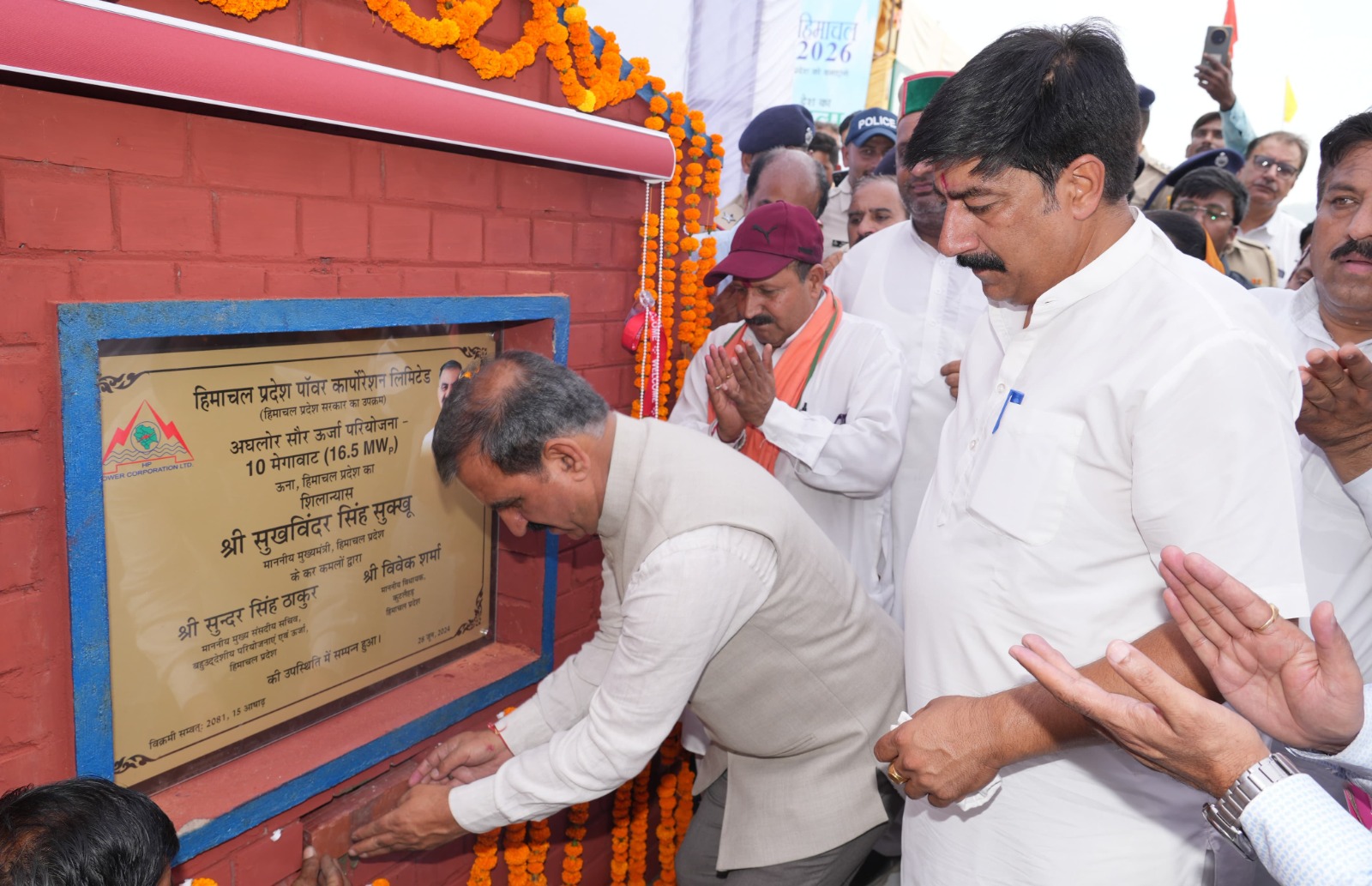 मुख्यमंत्री ठाकुर सुखविंद्र सिंह सुक्खू ने जिला ऊना के कुटलैहड़ विधानसभा क्षेत्र के अघलौर में 10 मेगावाट सौर ऊर्जा परियोजना का शिलान्यास किया।यह सौर ऊर्जा परियोजना 19 हेक्टेयर क्षेत्रफल में तीन माह में बनकर तैयार हो जाएगी,जिसमें प्रति वर्ष 22.73 मिलियन यूनिट बिजली का उत्पादन होगा।इस परियोजना से राज्य को राज्य सरकार को प्रति वर्ष आठ करोड़ रुपये का राजस्व प्राप्त होगा और 791 टन कार्बन उत्सर्जन में कमी आएगी।इस अवसर पर आयोजित जनसभा को संबोधित करते हुए मुख्यमंत्री ने कहा कि जिला ऊना में यह दूसरी सौर ऊर्जा परियोजना है तथा इससे पहले पेखूबेला में भी 32 मेगावाट क्षमता की सौर परियोजना रिकॉर्ड छह महीने में तैयार की गई है।पेखूबेला परियोजना से राज्य सरकार को प्रति वर्ष 20 करोड़ रुपए का राजस्व प्राप्त होगा।मुख्यमंत्री ने कहा कि हिमाचल प्रदेश विद्युत सरप्लस राज्य होने के बावजूद अक्तूबर से मार्च महीने तक बिजली खुले बाजार से खरीदता है जिस पर लगभग 1500 करोड़ रुपए व्यय किए जाते हैं।उन्होंने कहा कि सर्दियों में पानी कम होने की वजह से जलविद्युत परियोजनाओं में विद्युत उत्पादन कम हो जाता है,जिस कारण राज्य की आवश्यकताओं की पूर्ति के लिए बाजार से बिजली खरीदनी पड़ती है।ठाकुर सुखविंद्र सिंह सुक्खू ने कहा कि राज्य सरकार ने ग्रीन हाइड्रोजन के उत्पादन के लिए ऑयल इंडिया कम्पनी के साथ समझौता किया है और सौर ऊर्जा के दोहन पर भी विशेष ध्यान दिया जा रहा है।उन्होंने कहा कि राज्य सरकार निजी क्षेत्र में भी सौर ऊर्जा दोहन को बढ़ावा दे रही है और एक वर्ष में 200 मेगावाट सौर ऊर्जा के दोहन का लक्ष्य रखा गया है।उन्होंने कहा कि वर्तमान राज्य सरकार हिमाचल प्रदेश को आत्मनिर्भर बनाने के लिए निरंतर प्रयास कर रही है और सौर ऊर्जा का दोहन इसी दिशा में उठाया गया कदम है।ठाकुर सुखविंद्र सिंह सुक्खू ने कहा कि हिमाचल प्रदेश को जल विद्युत परियोजनाओं से 12 प्रतिशत रॉयल्टी मिल रही है,जो कि बेहद कम है।उन्होंने कहा कि सतलुज जल विद्युत निगम लिमिटेड (एसजेवीएनएल) अघलौर में सौर ऊर्जा परियोजना स्थापित करना चाहती थी, लेकिन राज्य सरकार ने इसे स्वयं संचालित करने का निर्णय लिया।उन्होंने कहा कि राज्य सरकार विभिन्न विकासात्मक परियोजनाओं के लिए धन की उपलब्धता सुनिश्चित कर रही है और हिमाचल को आत्मनिर्भर राज्य बनाने की दिशा में आगे बढ़ रही है,जो राज्य सरकार की दृढ़ इच्छाशक्ति का प्रत्यक्ष प्रमाण है।उन्होंने कहा कि पूर्व मुख्यमंत्री जय राम ठाकुर के नेतृत्व में पिछली भाजपा सरकार हिमाचल प्रदेश के हितों का संरक्षण करने में असफल रही।इसके विपरीत वर्तमान राज्य सरकार प्रदेश के संसाधनों का सर्वोत्तम दोहन कर इनका संवर्द्धन भी सुनिश्चित कर रही 