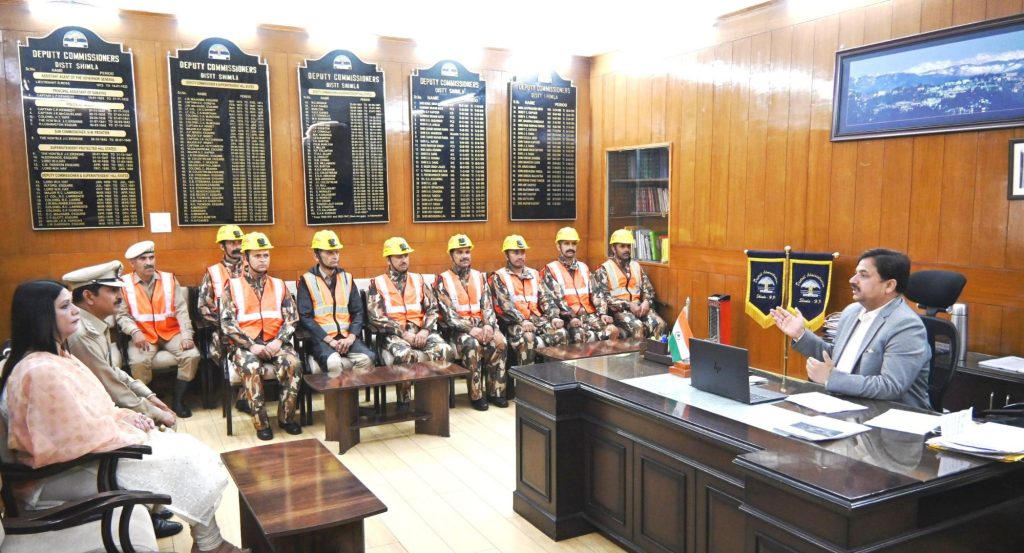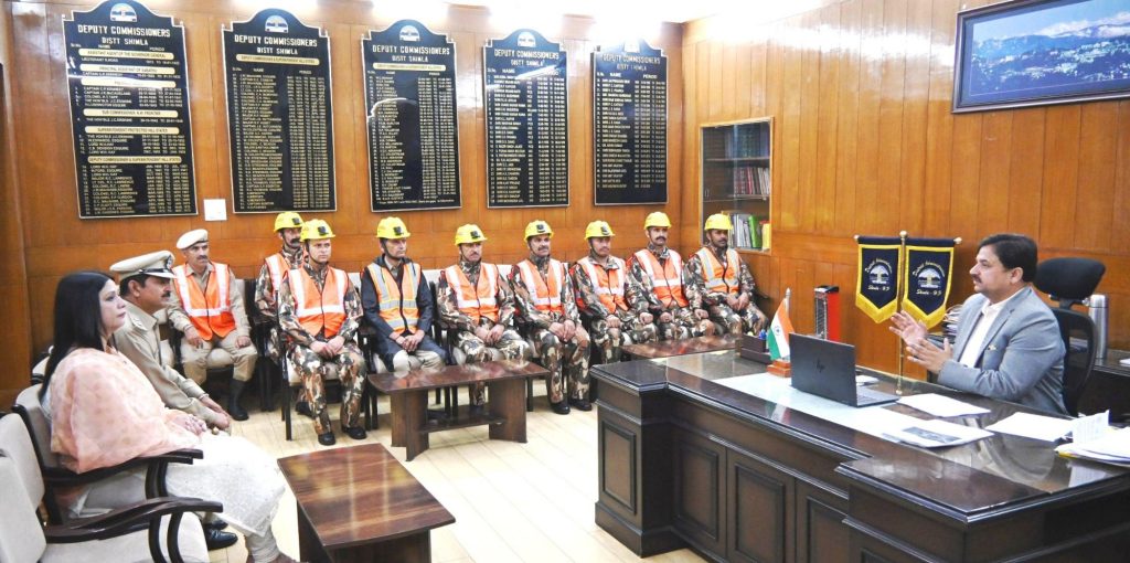 उपायुक्त शिमला अनुपम कश्यप ने मानसून के चलते शिमला शहर में आपदा की स्थिति में राहत कार्यों हेतु गठित गृह रक्षकों के त्वरित प्रतिक्रिया दल (क्यूआरटी) के साथ विशेष बैठक की।इस दौरान उपायुक्त ने बताया कि शहर में मानसून के दिनों में आपदा से निपटने के लिए गृह रक्षकों का 9 सदस्यीय दल बनाया गया है।इस दल को पूरा प्रशिक्षण दिया गया है और आपदा के समय यह दल लाईफ लाईन का काम करेगा।उन्होंने कहा कि यह दल कम से कम समय में आपदा स्थल पर पहुंचेगा ताकि राहत कार्यों को तीव्र गति से पूरा किया जाए।