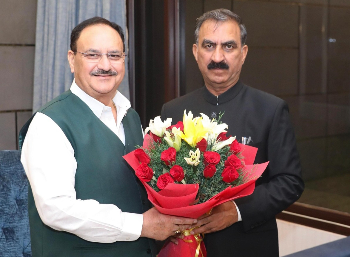 मुख्यमंत्री ठाकुर सुखविंद्र सिंह सुक्खू ने नई दिल्ली में केन्द्रीय स्वास्थ्य एवं परिवार कल्याण मंत्री जगत प्रकाश नड्डा से भेंट की।मुख्यमंत्री ने बैठक के दौरान नड्डा को राज्य में स्वास्थ्य क्षेत्र में अधोसंरचना और चिकित्सा सुविधाओं को बेहतर बनाने की प्रदेश सरकार की प्रतिबद्धता के बारे में अवगत करवाया।मुख्यमंत्री ने राज्य के अस्पतालों में ‘स्टेट ऑफ द आर्ट’ चिकित्सा प्रौद्योगिकी की आवश्यकता पर बल दिया ताकि प्रदेश के लोगों को आधुनिक चिकित्सा सुविधाओं के लिए प्रदेश के बाहर न जाना पड़े।उन्होंने निर्माणाधीन नाहन,चम्बा और हमीरपुर चिकित्सा महाविद्यालयों का कार्य पूर्ण करने के लिए धनराशि की मांग की।उन्होंने कहा कि राज्य में विद्यार्थियों को गुणवत्तापूर्ण चिकित्सा शिक्षा सुनिश्चित की जा रही है।उन्होंने राज्य में नर्सिंग का प्रशिक्षण पूरा करने वाले प्रशिक्षणार्थियों कोे सहयोग देने का भी आग्रह किया ताकि इन प्रशिक्षणार्थियों को विदेश में भी सेवाएं प्रदान करने के अवसर मिल सकें।ठाकुर सुखविंद्र सिंह सुक्खू ने प्रदेश की आर्थिकी में बल्क ड्रग पार्क की महत्त्वपूर्ण भूमिका तथा स्थानीय लोगों के लिए रोजगार व स्वरोजगार के अवसरों की उपलब्धता के दृष्टिगत केन्द्रीय स्वास्थ्य मंत्री से इस पार्क का निर्माण कार्य शीघ्र सुनिश्चित करने के लिए अतिरिक्त वित्तीय सहायता प्रदान करने का भी आग्रह किया।