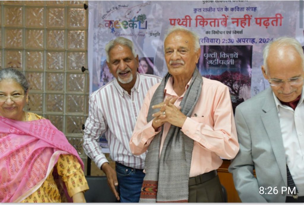 प्रदेश के वरिष्ठ कवि कुल राजीव पंत के पहले कविता संग्रह “पृथ्वी किताबें नहीं पढ़ती”का शिमला के गेयटी कॉन्फ्रेंस हॉल में विमोचन समारोह आयोजित किया गया।लोकार्पण समारोह शिमला की सुपरिचित साहित्यिक संस्था कीकली ट्रस्ट के सौजन्य से आयोजित किया गया।इस समारोह में वरिष्ठ कवि,आलोचक प्रो.कुमार कृष्ण मुख्य अतिथि के रूप में शामिल हुए जबकि भारतीय प्रशासनिक सेवा के सेवानिवृत अधिकारी और वरिष्ठ लेखक श्रीयुत श्रीनिवास जोशी ने कार्यक्रम की अध्यक्षता की।