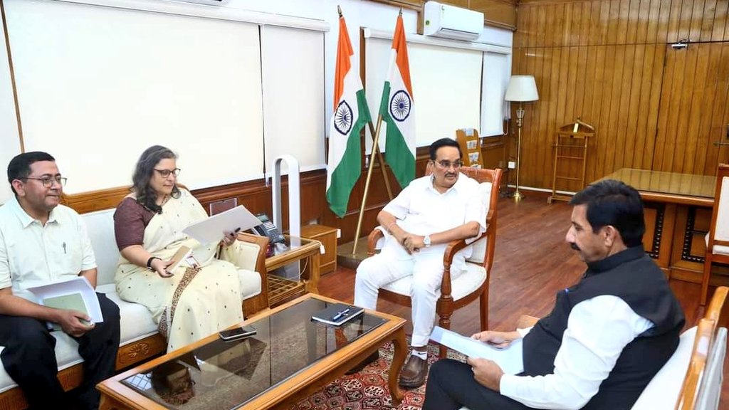 उप-मुख्यमंत्री मुकेश अग्निहोत्री ने नई दिल्ली में श्रम शक्ति भवन में केन्द्रीय जल शक्ति मंत्री सी.आर.पाटिल से भेंट की। इस अवसर पर आयोजित बैठक में जल जीवन मिशन के तहत जल शक्ति विभाग को धनराशि जारी करने संबंधी विभिन्न विषयों पर चर्चा की गई।उप-मुख्यमंत्री ने केन्द्रीय मंत्री सी.आर.पाटिल को अवगत करवाया कि हालांकि केंद्र सरकार ने जल जीवन मिशन के तहत वर्तमान वित्त वर्ष के लिए 916.53 करोड़ रुपये आवंटित करने को स्वीकृति दी है,लेकिन अब तक राज्य सरकार को कोई धनराशि जारी नहीं की गई है।इसके परिणामस्वरूप प्रदेश में विभिन्न परियोजनाओं की प्रगति प्रभावित हो रही है।उप-मुख्यमंत्री ने जल जीवन मिशन की पहली किश्त के पहले और दूसरे ट्रेंच की 458.26 करोड़ रुपये की राशि शीघ्र जारी करने का आग्रह किया।मुकेश अग्निहोत्री ने कहा कि राज्य सरकार प्रदेशवासियों को बेहतर सिंचाई सुविधाएं प्रदान करने के लिए निरंतर प्रयास कर रही है।उन्होंने कहा कि कुछ प्रमुख परियोजनाएं जिनमें फिना सिंह मध्यम सिंचाई परियोजना केंद्र सरकार के पास प्रधानमंत्री कृषि सिंचाई योजना (पीएमकेएसवाई) के तहत शामिल करने के लिए काफी समय से विचाराधीन हैं।इसके लिए लगभग 282.47 करोड़ रुपये की धनराशि की आवश्यकता है।इसके अतिरिक्त,120.79 करोड़ रुपये की बीत एरिया और कुटलैहड़ परियोजनाओं की मंजूरी प्रदान करने का आग्रह भी किया।पीएमकेएसवाई के तहत चल रही सिंचाई परियोजनाओं के लिए केंद्रीय सहायता जारी करने के मामले पर भी विस्तृत चर्चा की गई।
