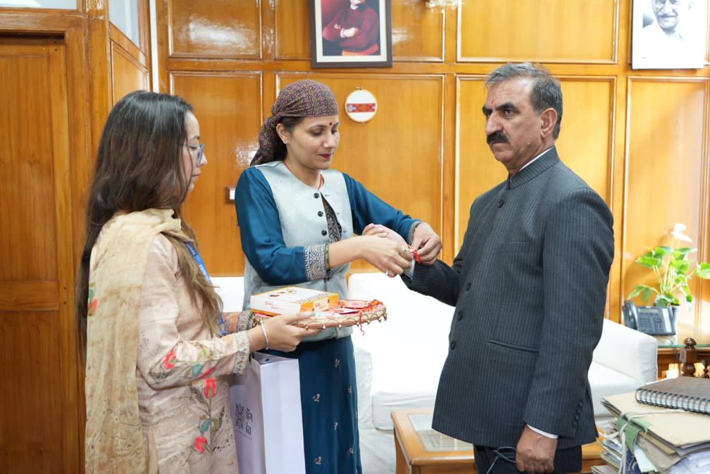 ब्रह्मकुमारी,एमएमशिमला शाखा से जुड़ी ब्रह्मकुमारियों ने रक्षा बंधन के पावन अवसर पर मुख्यमंत्री ठाकुर सुखविंदर सिंह सुक्खू की कलाई पर राखी बांधी।