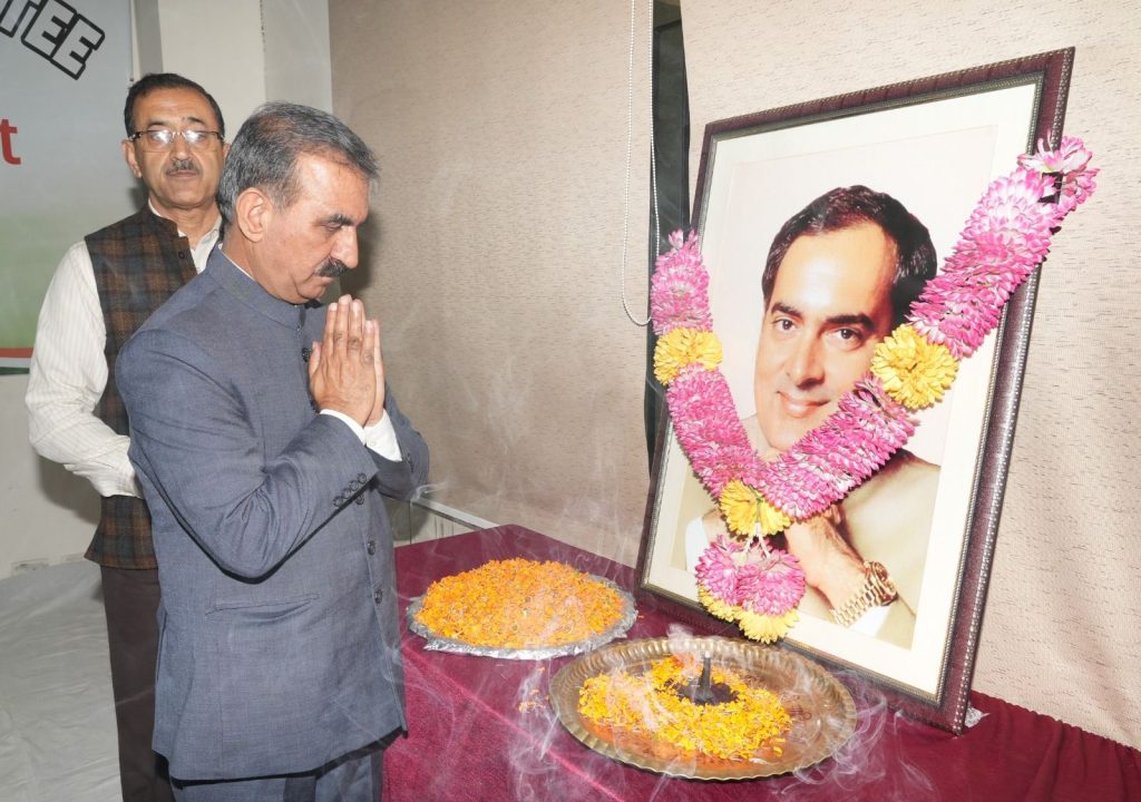 ठाकुर सुखविंद्र सिंह सुक्खू ने कहा कि राजीव गांधी के दूरदर्शी निर्णयों के फलस्वरूप आज भारत सूचना प्रौद्योगिकी के क्षेत्र में अग्रणी देश बनकर उभरा है।उन्होंने कहा कि अमेरिका ने जब भारत की सुपर कम्प्यूटर की मांग को ठुकराया,तब उनके सशक्त नेतृत्व ने देश ने सूचना प्रौद्योगिकी क्षेत्र में क्रांतिकारी बदलाव लाने के लिए निर्णायक कदम उठाए।लोकतांत्रिक प्रक्रिया में महिलाओं के अधिकारों की उन्होंने पुरजोर वकालत की और पंचायती राज संस्थाओं में 33 प्रतिशत आरक्षण दिया गया। कांग्रेस की वरिष्ठ नेता सोनिया गांधी ने विधानसभा और संसद में महिलाओं के 33 प्रतिशत आरक्षण के लिए आवाज उठाई।इस मौके पर स्वास्थ्य मंत्री डॉ.(कर्नल)धनी राम शांडिल,शिक्षा मंत्री रोहित ठाकुर,हिमाचल प्रदेश कांग्रेस समिति की अध्यक्ष प्रतिभा सिंह,मुख्य संसदीय सचिव मोहन लाल ब्राक्टा और संजय अवस्थी,हिमाचल प्रदेश भवन एवं सन्निर्माण कामगार कल्याण बोर्ड के अध्यक्ष नरदेव कंवर,हिमुडा के उपाध्यक्ष यशवंत छाजटा,शिमला नगर निगम के महापौर सुरेंद्र चौहान,उप महापौर उमा कौशल, पार्षदगण,मुख्यमंत्री के ओएसडी रितेश कपरेट और अन्य गणमान्य व्यक्ति उपस्थित थे।