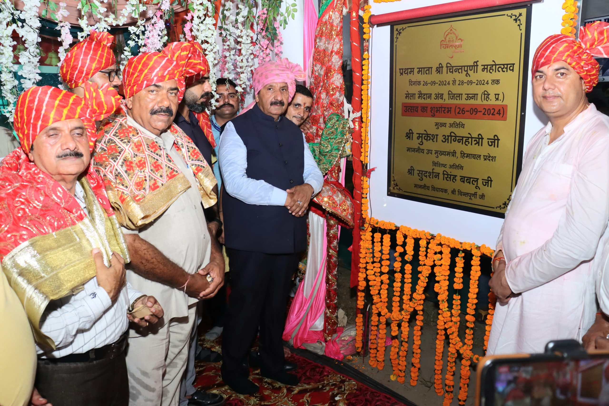 उप मुख्यमंत्री मुकेश अग्निहोत्री ने गुरुवार को तीन दिवसीय माता श्री चिंतपूर्णी महोत्सव का मेला ग्राउंड अम्ब में शुभारंभ किया।इस अवसर पर स्थानीय विधायक सुदर्शन सिंह बबलू उनके साथ रहे,उपमुख्यमंत्री ने एसडीएम अंब कार्यालय परिसर में माता श्री चिंतपूर्णी जी की पवित्र ज्योति का स्वागत किया और शोभा यात्रा में भाग लिया।