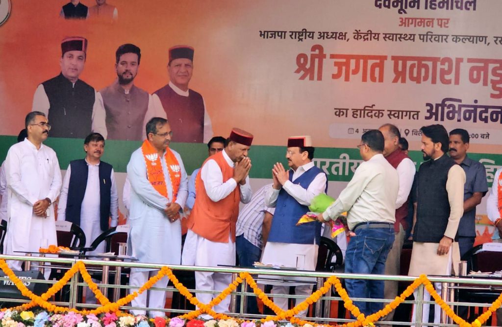 प्रदेश भाजपा अध्यक्ष राजीव बिंदल ने बिलासपुर में आयोजित अभिनंदन समारोह में कहा हिमाचल के लिए गौरव की बात है कि हिमाचल जैसे छोटे से राज्य से जेपी नड्डा केंद्र में मंत्री और भाजपा के राष्ट्रीय अध्यक्ष हैं।उन्होंने कहा कि देश में और प्रदेश में लोकसभा चुनाव में ऐतिहासिक जीत के पीछे जेपी नड्डा की अथक मेहनत रही,जिसका परिणाम यह रहा कि पीएम मोदी तीसरी बार देश के प्रधानमंत्री बने।उन्होंने कहा कि जेपी नड्डा के नेतृत्व में देश और प्रदेश तेजी से आगे बढ़ रहा है।