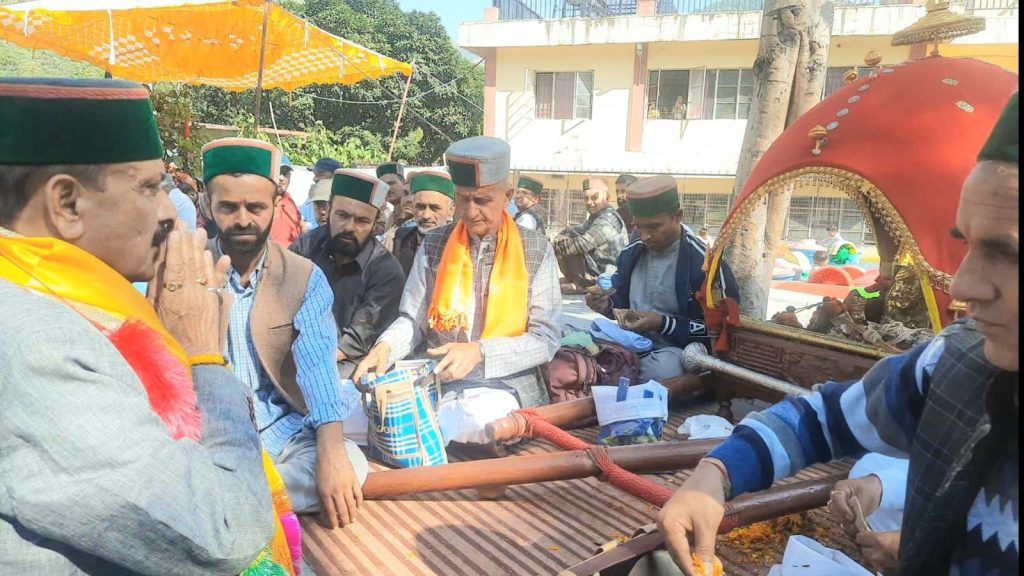 मेले में आमंत्रित समस्त देवी–देवताओं के चरणों में शीश झुकाकर आशीर्वाद प्राप्त कर किया मेले का शुभारंभ।