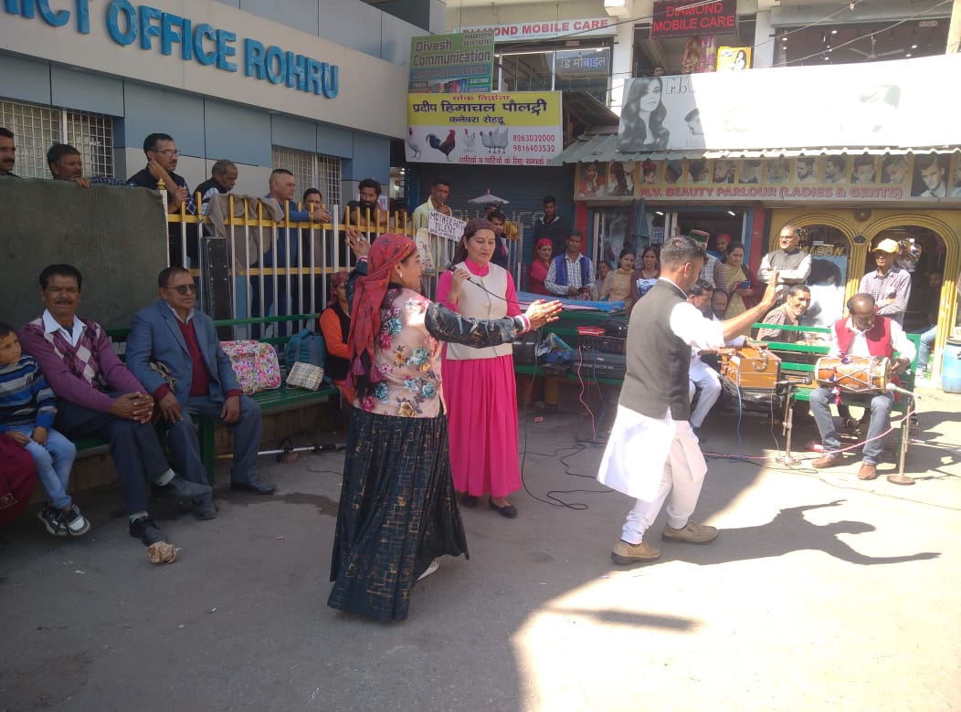 समर्थ-2024 के तहत कलाकारों ने रोहड़ू बस स्टैंड तथा समरकोट में लोगों को किया जागरूक।