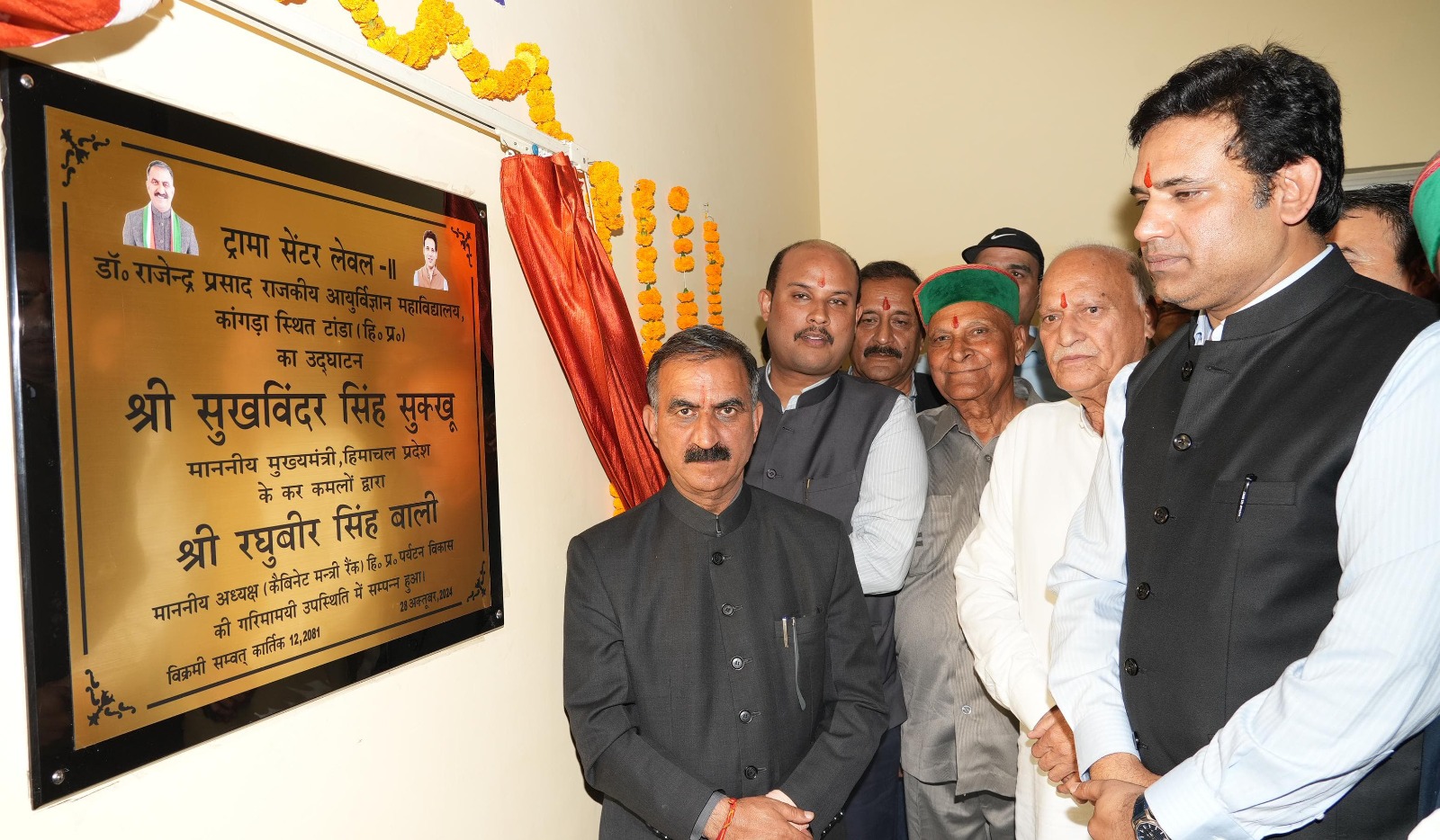 मुख्यमंत्री ठाकुर सुखविंद्र सिंह सुक्खू ने कांगड़ा जिले में डॉ.राजेंद्र प्रसाद राजकीय आयुर्विज्ञान महाविद्यालय,टांडा में 10.27 करोड़ रुपये की लागत से निर्मित ट्रामा सेंटर लेवल-दो का उद्घाटन किया।इस अवसर पर उन्होंने कहा कि इस ट्रामा सेंटर में मशीनरी और उपकरणों की खरीद पर 6 करोड़ रुपये,निर्माण कार्यांे पर 1.50 करोड़ रुपये और अन्य संबद्ध सेवाओं पर 2.77 करोड़ रुपये खर्च किए गए हैं।श्री सुक्खू ने कहा कि ट्रामा सेंटर के लिए विभिन्न श्रेणियों के 95 पद स्वीकृत किए गए हैं।इनमें न्यूरो सर्जन का एक पद,एनेस्थीटिस्ट के तीन पद,ऑर्थोपैडिक सर्जन का एक पद,कैजुअल्टी मेडिकल अधिकारी के आठ पद,स्टाफ नर्स के 40 पद,नर्सिंग अटेंडेंट के 16 पद,ऑपरेशन थियेटर तकनीशियन के पांच पद,रेडियोग्राफर के चार पद,लैब तकनीशियन के दो पद तथा मल्टीटास्क वर्कर के 15 पद शामिल हैं।उन्होंने कहा कि 72 पदों पर नियुक्ति की जा चुकी है तथा शेष पदों पर नियुक्ति की प्रक्रिया जारी है।टांडा मेडिकल कॉलेज में स्वास्थ्य विभाग के अधिकारियों के साथ समीक्षा बैठक की अध्यक्षता करते हुए मुख्यमंत्री ने कहा कि राज्य सरकार हिमाचल प्रदेश के सभी मेडिकल कॉलेजों में चरणबद्ध तरीके से सुविधाओं को बढ़ा रही है।सरकार का उद्देश्य प्रदेश में उच्च गुणवत्तायुक्त उपचार विकल्प प्रदान करना है,ताकि मरीजों को कहीं और महंगे उपचार की आवश्यकता न पडे़।उन्होंने कहा कि राज्य की लगभग आधी स्वास्थ्य सेवा आवश्यकताओं को पूरा कर रहे टांडा मेडिकल कॉलेज को नवीनतम तकनीक और आधुनिक सुविधाओं के साथ स्तरोन्नत किया जाएगा।इस मेडिकल कॉलेज में सालाना लगभग 5.89 लाख मरीज ईलाज के लिए आते हैं जिसके दृष्टिगत सुधारों की तत्काल आवश्यकता है।