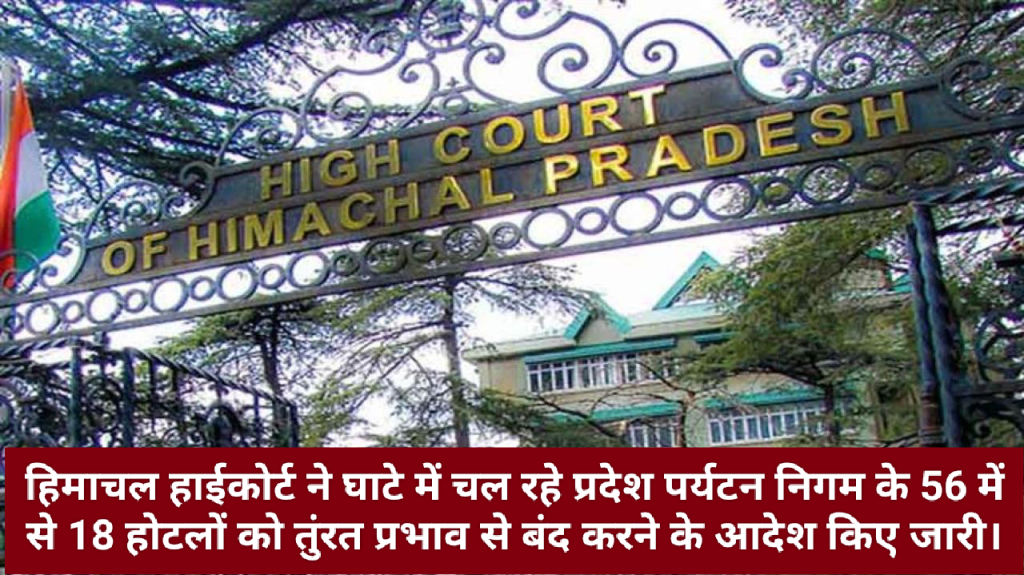 हिमाचल प्रदेश हाईकोर्ट ने एचपीटीडीसी के घाटे में चल रहे 18 होटलों को तुरंत प्रभाव से बंद करने के आदेश जारी किए हैं।इन होटलों में द पैलेस होटल,चैल,होटल गीतांजलि, डल्हौजी,होटल बाघल,दाड़लाघाट,होटल धौलाधार, धर्मशाला,होटल कुणाल धर्मशाला,होटल कश्मीर हाऊस,धर्मशाला,होटल एप्पल ब्लॉसम,फागू,होटल चंद्रभागा, केलोंग,होटल देवदार,खजियार,होटल गिरीगंगा,खड़ापत्थर, होटल मेघदूत,कियारीघाट,होटल सरवरी,कुल्लू,होटल लॉग हट्स मनाली,होटल हिडिम्बा कॉटेज,मनाली,होटल कुंजुम,मनाली,होटल भागसू मैक्लोडगंज,होटल द कैसल,नग्गर व होटल शिवालिक परवाणू शामिल हैं।
