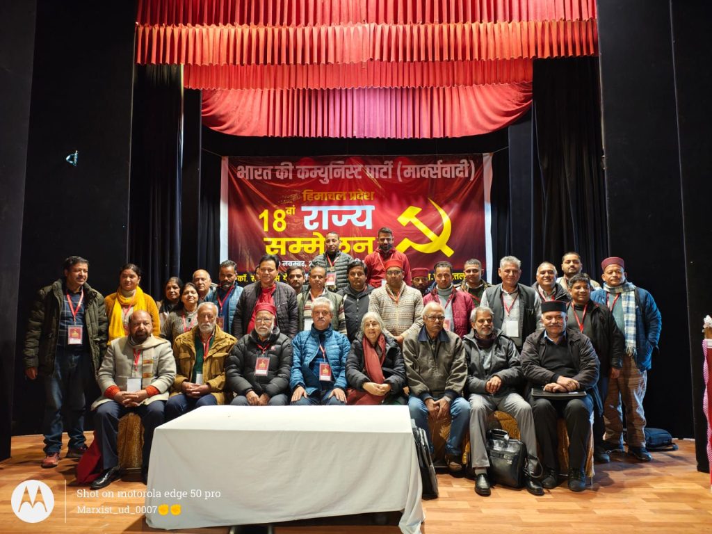भारत की कम्युनिस्ट पार्टी माक्र्सवादी राज्य कमेटी हिमाचल प्रदेश का तीन दिवसीय सम्मेलन शिमला के कालीबाड़ी हॉल में संपन्न हुआ।सम्मेलन को पार्टी पोलिट ब्यूरो सदस्य कॉमरेड सुभाषिनी अली,तपन सेन,ए विजय राघवन व केंद्रीय कमेटी सदस्य विक्रम सिंह ने संबोधित किया।सम्मेलन में दो स्थाई आमंत्रित सदस्यों सहित बत्तीस सदस्यीय राज्य कमेटी का गठन किया गया।संजय चौहान को राज्य सचिव चुना गया। डा.ओंकार शाद,राकेश सिंघा,डा.कश्मीर ठाकुर,डा.कुलदीप सिंह तंवर,प्रेम गौतम,कुशाल भारद्वाज,विजेंद्र मेहरा,भूपेंद्र सिंह को राज्य सचिवमंडल सदस्य चुना गया।रविंद्र कुमार, जगत राम,फालमा चौहान,होत्तम सौंखला,सुदेश,जोगिंद्र, देवकीनंद,नारायण,अशोक कटोच,राजेंद्र,मोहित,नरेंद्र, सत्यवान पुंडीर,महेंद्र राणा,राम सिंह,बरकत,कूलदीप डोगरा, वीना वैद्य,गीता राम,शकीनी कपूर और चंद्रकांता को राज्य कमेटी सदस्य चुना गया।सुरेश सरवाल और केके राणा,राज्य कमेटी में स्थाई आमंत्रित सदस्य होंगे।तीन सदस्यीय कंट्रोल कमीशन का गठन किया गया।जिसमें जगमोहन ठाकुर को अध्यक्ष,राजेंद्र चौहान और विजय शर्मा को सदस्य चुना गया। नवनिर्वाचित राज्य सचिव संजय चौहान ने सम्मेलन को संबोधित करते हुए कहा कि भविष्य में पार्टी जनमुद्दों पर जनांदोलन करेगी।पार्टी प्रदेश में जनता को कांग्रेस भाजपा के अंदर एक बेहतर विकल्प देगी।पार्टी प्रदेश में मजदूरों,किसानों,मध्यम वर्ग,महिलाओं,छात्रों,युवाओं,दलितों, पिछड़ों,वंचितों,अल्पसंख्यकों व सभी मेहनतकश तबकों की आवाज बनेगी।उन्होंने कहा कि मोदी के नेतृत्व में चलने वाली एनडीए की केंद्र सरकार और हिमाचल की कांग्रेस सरकार दोनों ही जनविरोधी नीतियां लागू कर रही हैं,जिस से एक ओर अमीर और ज्यादा अमीर हो रहे हैं व आम जनता की पीड़ा लगातार बढ़ रही है।प्रदेश में युवाओं की रोजगार परीक्षाओं के नतीजे घोषित नहीं किए जा रहे हैं।आरोप लगाया कि शिमला में सांप्रदायिक सौहार्द को बिगाडऩे के कार्य को आरएसएस व भाजपा से संबंधित कुछ सनातनी संगठनों ने अमलीजामा पहनाया परंतु इस पूरे घटनाक्रम में कांग्रेस पार्टी के नेता भी बेनकाब हुए हैं।इस घटनाक्रम से इन दोनों पार्टियों का जनता में पर्दाफाश हुआ है व जनता के समक्ष केवल सीपीआईएम ही अब एकमात्र विकल्प है।