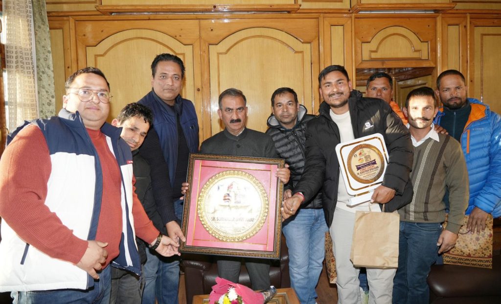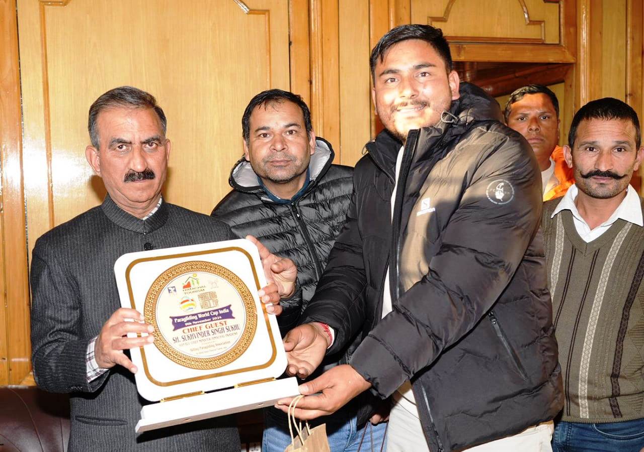 हिमाचल प्रदेश बिलिंग पैराग्लाइडिंग एसोसिएशन के एक प्रतिनिधिमंडल ने अध्यक्ष अनुराग शर्मा के नेतृत्व में यहां मुख्यमंत्री ठाकुर सुखविंद्र सिंह सुक्खू से भेंट की।उन्होंने कांगड़ा जिले के बीड़ बिलिंग में बीते माह नवंबर में पैराग्लाइडिंग वर्ल्ड कप के सफल आयोजन के लिए मुख्यमंत्री का आभार व्यक्त किया।प्रतिनिधिमंडल ने मुख्यमंत्री को हिमाचली टोपी,शॉल व स्मृति चिन्ह देकर सम्मानित किया।मुख्यमंत्री ने पैराग्लाइडिंग वर्ल्ड कप में द्वितीय स्थान पर रहे बीड़ निवासी रंजीत कुमार को भी सम्मानित करते हुए कहा कि यह गर्व का विषय है कि राज्य के युवा हर क्षेत्र में हिमाचल प्रदेश का नाम रोशन कर रहे हैं।इस अवसर पर एसोसिएशन के पदाधिकारी सुरेश कुमार,प्रवीण कुमार,रंजीत चमेल,हरदेव ठाकुर,शैलभ अवस्थी भी उपस्थित थे।