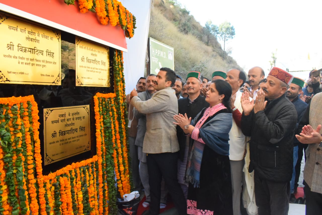 प्रदेश के लोक निर्माण एवम् शहरी विकास मंत्री विक्रमादित्य सिंह ने शिमला ग्रामीण विधानसभा क्षेत्र के अंतर्गत ग्राम पंचायत बाग में 8.06 करोड़ रूपये की लागत से निर्मित 3 संपर्क सड़कों का शुभारंभ कर हिमाचल पथ परिवहन निगम की बस को हरी झंडी दिखाकर रवाना किया,इस अवसर पर उन्होंने देवता साहब पंदोआ के चरणों में शीश नवाजते हुए कहा कि ग्राम पंचायत बाग का अधिकतर क्षेत्र पिछड़ा है इसलिए इस क्षेत्र के ग्रामीणों को सड़क सुविधा उपलब्ध कराने के लिए नाबार्ड के तहत 6 करोड़ 55 लाख रुपए की लागत से 10.5 किलोमीटर लंबी बाग क्यालू संपर्क सड़क,65 लाख रूपये की लागत से निर्मित 1.5 किलोमीटर लंबी बरोटा संपर्क सड़क तथा 86 लाख रुपए की लागत से निर्मित 3.5 किलो मीटर बठोरा-पनेवट संपर्क सड़क का निर्माण कार्य पूर्ण कर लोकार्पण किया गया है इससे पंचायत क्षेत्र के लोगों को आवाजाही के लिए बस सुविधा उपलब्ध होगी।उन्होंने कहा कि शीघ्र ही इन तीनों रूटों में बसों को चलाने के लिए हिमाचल पथ परिवहन निगम के अधिकारियों को निर्देश दिए जायेंगे ताकि शुभारंभ की गई तीनों सड़कों में बस चला कर ग्रामीणों को बस सुविधा उपलब्ध कराई जा सके।