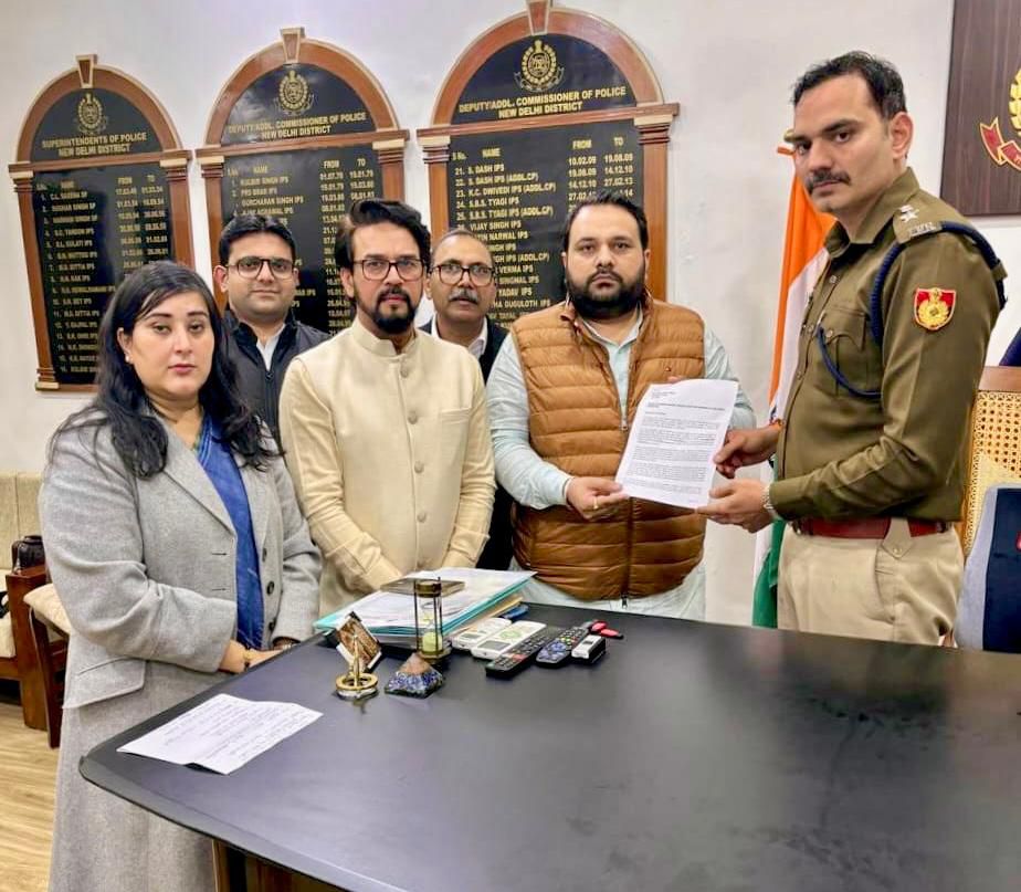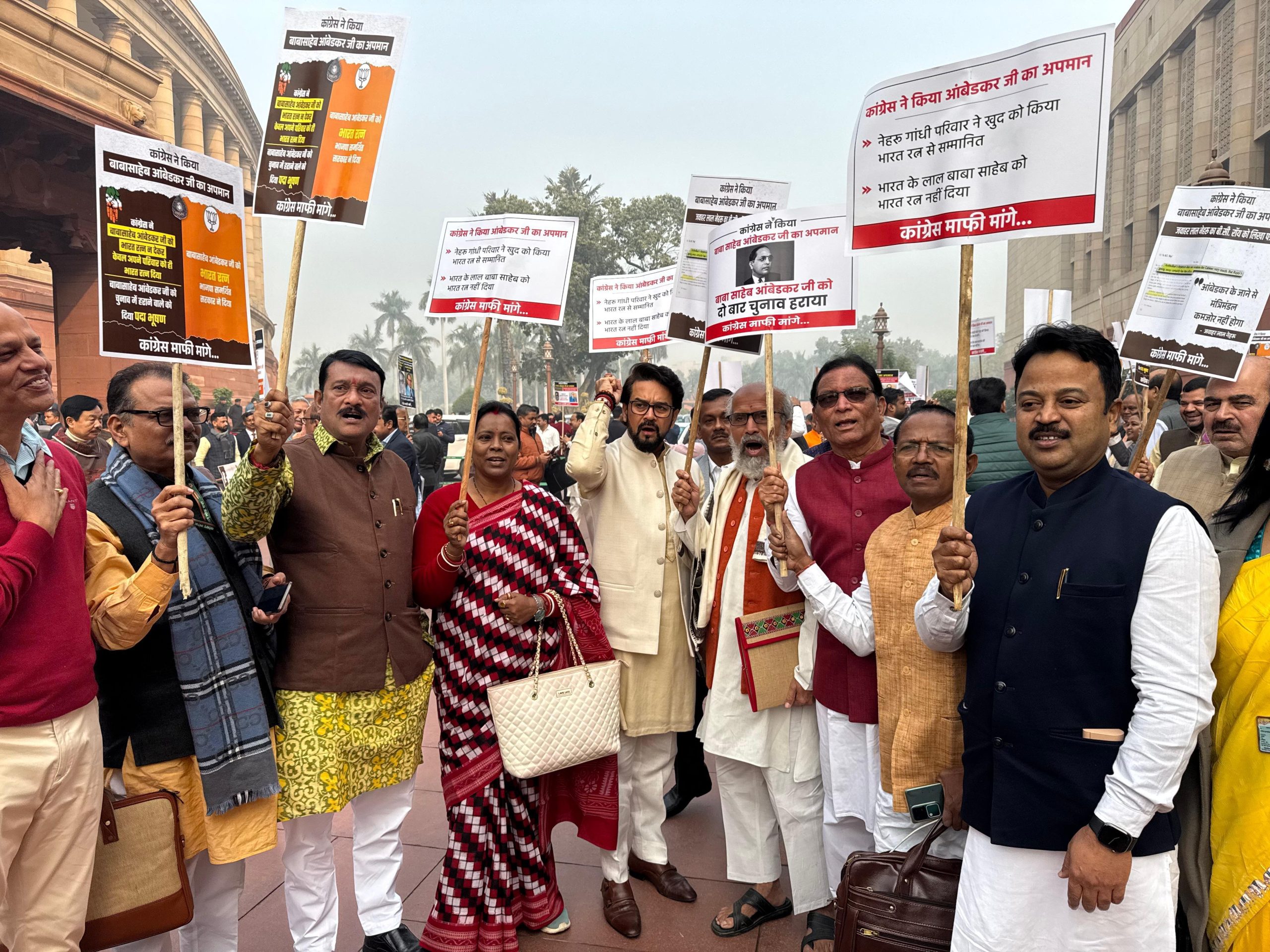 संसद में बीजेपी और कांग्रेस के बीच मकर द्वार पर हुए धक्का-मुक्की कांड के बाद दोनों पार्टी के डेलीगेशन पार्लियामेंट स्ट्रीट थाने पहुंचे,सबसे पहले बीजेपी सांसद अनुराग ठाकुर,बांसुरी स्वराज और वडोदरा से हेमांग जोशी संसद से सीधे दोपहर करीब डेढ़ बजे पार्लियामेंट स्ट्रीट थाने पहुंचे,मकसद था संसद में हुई धक्का-मुक्की को लेकर शिकायत दर्ज करवाना,बीजेपी की शिकायत पर पुलिस ने राहुल गांधी के खिलाफ एफआईआर दर्ज कर ली है,उधर,घायल सांसद प्रताप सारंगी और मुकेश राजपूत का आरएमएल अस्पताल में इलाज चल रहा था,सारंगी के माथे पर चोट आई जबकि मुकेश राजपूत के सिर के पीछे चोट लगी।इसी को लेकर शिकायत दर्ज करवाने पहुंचे बीजेपी के तीनों सांसद थाना परिसर में मौजूद नई दिल्ली जिले के डीसीपी देवेश महला के ऑफिस पहुंचे,करीब डेढ़ घंटे तक मुलाकात की और अपनी शिकायत दी,बीजेपी की तरफ से शिकायत वडोदरा के सांसद हेमांग जोशी ने दर्ज करवाई और अपनी शिकायत में सीधे राहुल गांधी पर आरोप लगाया।पार्लियामेंट स्ट्रीट थाने में मौजूद बीजेपी सांसद अनुराग ठाकुर ने कहा,हमने राहुल गांधी के खिलाफ दिल्ली पुलिस में शिकायत दर्ज कराई है,उसमें आज जो संसद में पूरा घटनाक्रम हुआ है उसकी जानकारी दी है,राहुल गांधी का जिस तरह का रवैया है,उन्हें लगता है कि वो कानून से ऊपर हैं,आरोप लगाया कि गांधी परिवार अपने आपंको कानून से ऊपर समझता है।