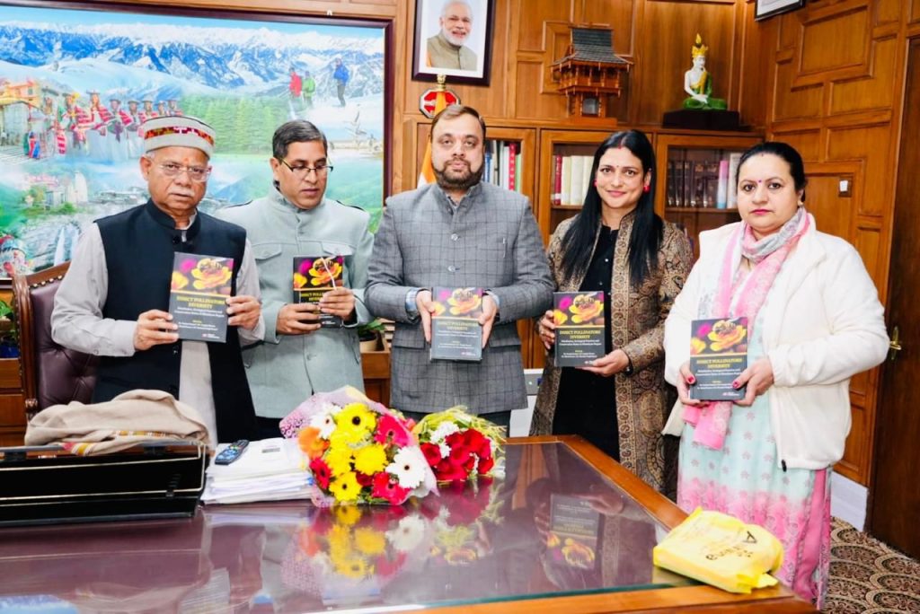 राज्यपाल शिव प्रताप शुक्ल ने राजभवन में परागण करने वाले इन्सैक्ट्स पर आधारित शोधपरक पुस्तक ‘‘कीट परागणकर्ता विविधता’’का विमोचन किया।यह पुस्तक हिमाचल प्रदेश विश्वविद्यालय शिमला में बायोसाइंसेज विभाग में सहायक प्रोफेसर डॉ.नीलम कुमारी,डॉ वाई.एस. परमार बागवानी एवं वानिकी विश्वविद्यालय,नौणी के मशोबरा स्थित बागवानी अनुसंधान केंद्र में वैज्ञानिक डॉ.संगीता शर्मा तथा हिमाचल प्रदेश विश्वविद्यालय शिमला से डॉ.नितेश कुमार,और डॉ.हिरेंद्र सिंह बनियाल द्वारा लिखी गई है।उन्होंने राज्यपाल को जानकारी दी कि यह पुस्तक परागण करने वाले इंसैक्ट्स और कृषि तथा बागवानी में उनके महत्व से संबंधित जानकारी प्रदान करती है।उन्होंने कहा कि परागण करने वाले इंसैक्ट्स का फल उत्पादन में बहुत महत्व हाता है।उन्होंने कहा कि यह पुस्तक कृषक, बागवानी विशेषज्ञ,शोधकर्ताओं और छात्रों के लिए काफी फायदेमंद सिद्ध होगी।उन्होंने राज्यपाल को विषय संबंधी विस्तृत जानकारी दी।राज्यपाल ने लेखक मंडल को शोध के साथ पुस्तक को बागवानों और कृषकों के लिए प्रकाशित करने पर बधाई दी।उन्होंने कहा कि अनुसंधान का महत्व तभी है जब वह किसानों और बागवानों तक पहुंचे और उन्हें उससे लाभ मिले।उन्होंने आशा व्यक्त की कि भविष्य में भी वे इस तरह के प्रयासों को जारी रखेंगे।राज्यपाल के सचिव सी.पी.वर्मा भी इस अवसर पर उपस्थित थे।