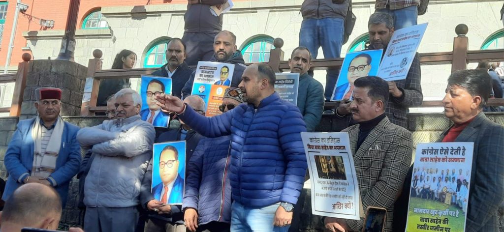 भाजपा जिला शिमला द्वारा डाक्टर बीआर अंबेडकर प्रकरण को लेकर शिमला के सीटीओ चौक पर प्रदर्शन किया।भाजपा नेताओं ने कांग्रेस पार्टी के खिलाफ जमकर मोर्चा खोला।संविधान पर कांग्रेस को घेरा और बीआर अंबेडकर के अपमान का आरोप लगाया।जिला अध्यक्ष प्रेम ठाकुर के नेतृत्व में हुए इस प्रदर्शन में भाजपा के वरिष्ठ नेता सुरेश भारद्वाज,संजय सूद,कर्ण नंदा,गणेश दत्त,संजय ठाकुर और कमलजीत सूद ने भाग लिया।कार्यक्रम में मुख्य वक्ता युवा मोर्चा के प्रदेश उपाध्यक्ष सुशील कड़शोली और अनुसूचित जाति मोर्चा के प्रदेश अध्यक्ष राकेश डोगरा रहे।सुशील कड़शोली ने कहा कि कांग्रेस द्वारा बाबा साहेब को बार-बार अपमानित किया गया है और अब वे वोट की राजनीति के लिए बाबा साहेब के नाम का इस्तेमाल कर रहे हैं।आरोप लगाया कि पंडित जवाहरलाल नेहरू की डॉ अंबेडकर के प्रति बेपनाह नफरत जगजाहिर थी।पंडित नेहरू ने देश के संविधान निर्माता डाक्टर अंबेडकर को दो बार चुनाव हराया और उन्हें संसद में जाने से रोका।उस समय पंडित नेहरू गर्व से विदेशियों को पत्र लिखकर खुशी व्यक्त कर रहे थे कि बाबा साहेब अब कैबिनेट का हिस्सा नहीं हैं।