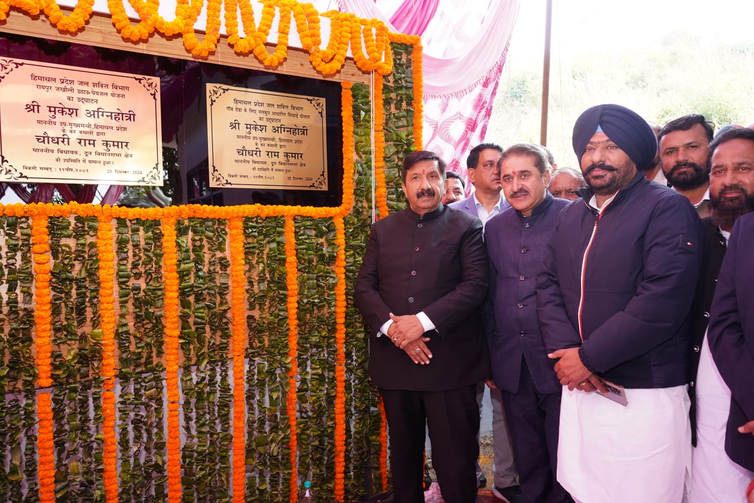 उप मुख्यमंत्री मुकेश अग्निहोत्री ने कहा कि प्रदेश में सिंचाई एवं पेयजल सुविधाओं को सुदृढ़ कर जन-जन का जीवन सरल बनाना प्रदेश सरकार का मुख्य धेय है।मुकेश अग्निहोत्री सोलन ज़िला के दून विधानसभा क्षेत्र में लगभग 12.50 करोड़ रुपए की लागत से निर्मित विभिन्न सिंचाई एवं जलापूर्ति योजनाओं का लोकार्पण करने के बाद ग्राम पंचायत थाना में जनसभा को सम्बोधित कर रहे थे।मुकेश अग्निहोत्री ने दून विधानसभा क्षेत्र में 8 सिंचाई एवं जलापूर्ति योजनाओं को लोगों को समर्पित किया।उन्होंने 4.23 करोड़ रुपए की लागत से 5 सिंचाई योजनाओं का लोकार्पण किया। इन योजनाओं से 95.57 हेक्टेयर भूमि को सिंचाई सुविधा प्राप्त होगी।उन्होंने लगभग 8.27 करोड़ रुपए लागत से निर्मित तीन पेयजल आपूर्ति योजनाएं भी लोगों को समर्पित की।इन सभी योजनाओं से 31 गांव के 8596 लोग लाभान्वित होंगे।मुकेश अग्निहोत्री ने 3.01 करोड़ रुपए की लागत से निर्मित ग्राम पंचायत थाना के गांव धर्मपुर,भूपनगर तथा कोटला में उठाऊ पेयजल योजना का लोकार्पण किया।