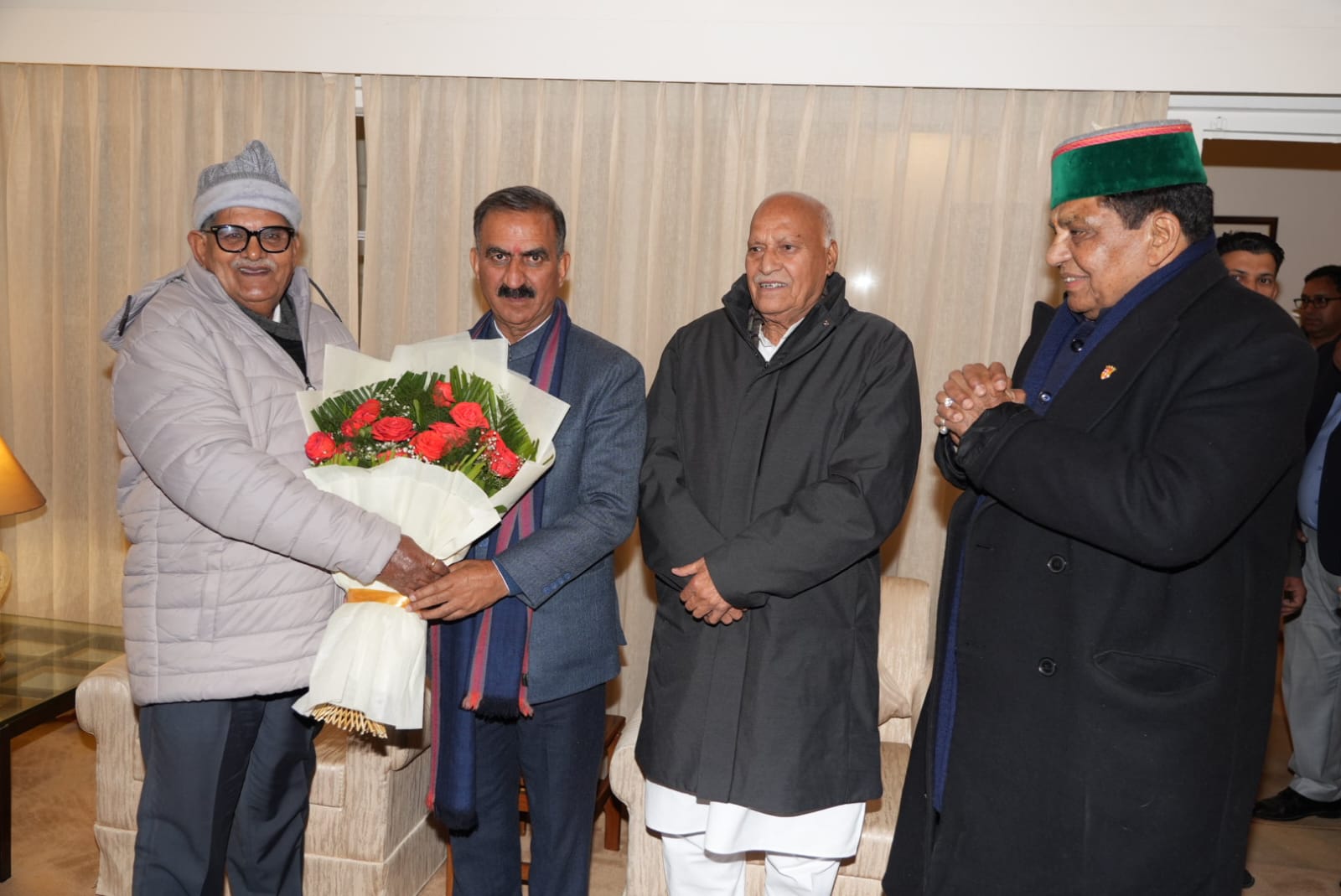 पंजाब के राज्यपाल गुलाब चंद कटारिया ने यहां मुख्यमंत्री ठाकुर सुखविंद्र सिंह सुक्खू से भेंट की।यह एक शिष्टाचार भेंट थी।मुख्यमंत्री ने राज्यपाल को शॉल और हिमाचली टोपी से सम्मानित किया।स्वास्थ्य एवं परिवार कल्याण मंत्री डॉ(कर्नल)धनी राम शांडिल और कृषि मंत्री प्रो.चंद्र कुमार इस मौके पर उपस्थित थे।
