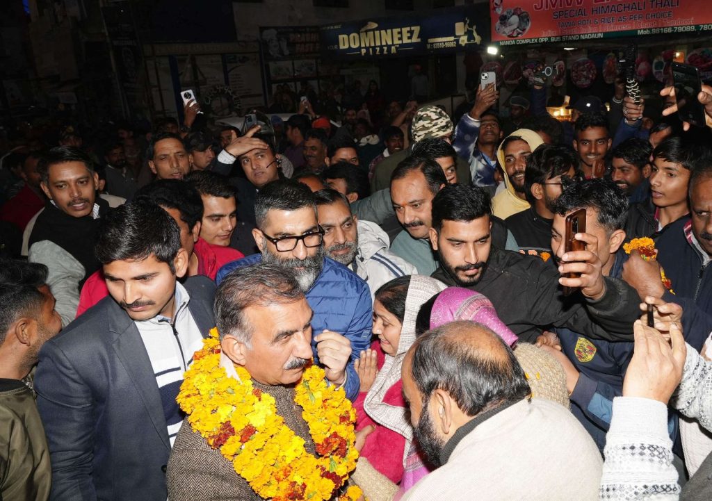 इससे पूर्व,नादौन पहुंचने पर स्थानीय लोगों ने मुख्यमंत्री का भव्य स्वागत किया।विभिन्न प्रतिनिधिमण्डलों ने मुख्यमंत्री से भेंट कर उन्हें सम्मानित किया।इस अवसर पर विधायक संजय अवस्थी,रणजीत सिंह राणा एवं सुरेश कुमार,कांगड़ा सहकारी बैंक के अध्यक्ष कुलदीप सिंह पठानिया,कांगड़ सहकारी प्राथमिक कृषि एवं ग्रामीण विकास बैंक के अध्यक्ष राम चंद्र पठानिया और कांग्रेस नेता पुष्पिन्दर वर्मा सहित अन्य गणमान्य उपस्थित थे।