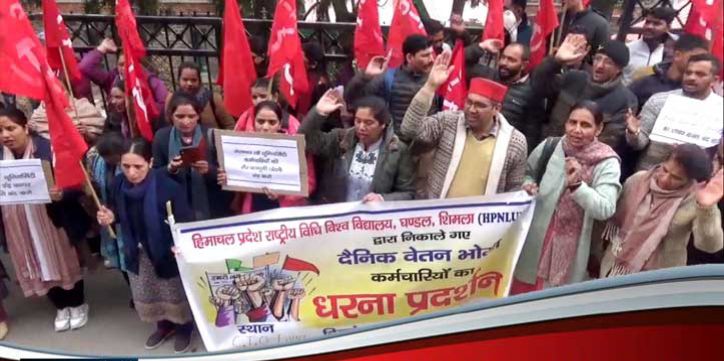 नेशनल लॉ यूनिवर्सिटी घंडल शिमला से 43 कर्मचारियों को नौकरी से निकालने के खिलाफ डीसी ऑफिस शिमला के बाद प्रदर्शन किया गया।राष्ट्रीय विधि विश्वविद्यालय घंडल शिमला से 43 दैनिक भोगी कर्मचारियों को गैर कानूनी तरीके से नौकरी से निकालने के खिलाफ सीटू के बैनर तले यह प्रदर्शन हुआ,जिसमें निकाले गए कर्मचारी भी शामिल थे।