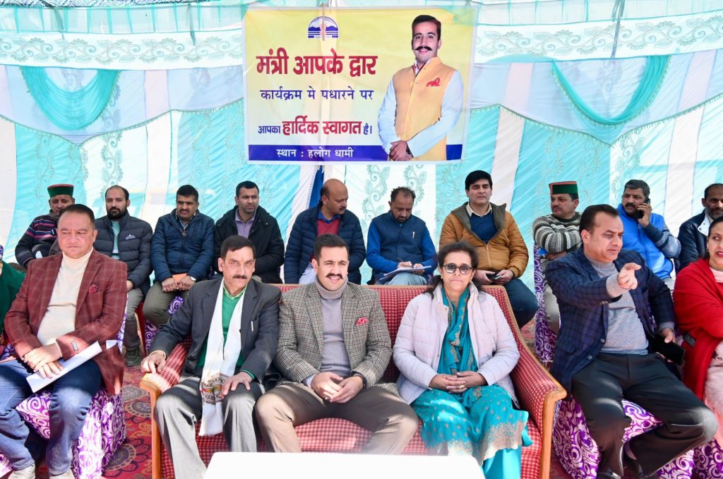 कैबिनेट मंत्री ने कहा कि आज स्थानीय पंचायत क्षेत्र के लोगों,व्यापार मंडल के प्रतिनिधियों एवं आसपास की पंचायत के प्रतिनिधियों द्वारा“मंत्री आपके द्वार कार्यक्रम”में जो भी समस्याएं उठाई गई है,उन समस्याओं का संबंधित अधिकारी के सहयोग से सौ फीसदी समाधान सुनिश्चित किया जाएगा।उन्होंने कहा कि हलोग धामी पंचायत में पिछले दो वर्षों के सरकार के कार्यकाल के दौरान 20 लाख रुपए की राशि विभिन्न विकास कार्यों के लिए स्वीकृत की गई है जबकि विकास में जन सहयोग के तहत 23 लाख रुपए की राशि सोलर लाइटों को स्थापित करने के लिए स्वीकृत की गई है।उन्होंने कहा कि आने वाले समय में धामी अस्पताल को आदर्श अस्पताल के रूप में स्थापित करने के लिए प्रदेश के मुख्यमंत्री तथा स्वास्थ्य मंत्री से चर्चा की जाएगी,इसी तरह धामी में उप ट्रेजरी खोलने के लिए भी प्रयास किए जाएंगे।