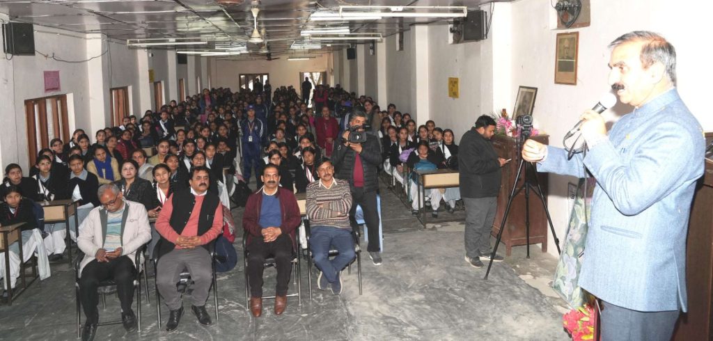 मुख्यमंत्री ठाकुर सुखविंद्र सिंह सुक्खू ने बालिका दिवस के अवसर पर जिला कांगड़ा के राजकीय वरिष्ठ माध्यमिक पाठशाला (कन्या)धर्मशाला में छात्राओं से बातचीत की और स्कूल की सभी 351 छात्राओं को 1000-1000 रुपये प्रदान करने की घोषणा की।स्कूल का निरीक्षण करने के उपरांत मुख्यमंत्री ने बालिका दिवस की बधाई देते हुए कहा कि आज मैं सभी से सीखने आया हूं,ताकि शिक्षा में सुधार के लिए कदम उठाए जा सकें।उन्होंने कहा,मैं भी सरकारी स्कूल में पढ़ा हूं लेकिन अब सरकारी स्कूल में पढ़ने वाले विद्यार्थियों में आत्मविश्वास की कमी देखी जा रही है।राज्य सरकार उनका आत्मविश्वास बढ़ाने के लिए कई कदम उठा रही है,ताकि वह बेहतर नागरिक बन सकें।मुख्यमंत्री ने कहा कि राज्य सरकार एक भी विद्यार्थी को शिक्षा से वंचित नहीं रहने देगी,लेकिन शिक्षा में गुणात्त्मक सुधार के लिए कदम उठाए जा रहे हैं। छात्राओं से बात करते हुए मुख्यमंत्री ने उनसे कई सवाल भी पूछे।मुख्यमंत्री ने राजकीय वरिष्ठ माध्यमिक पाठशाला (बाल) धर्मशाला का निरीक्षण भी किया और विद्यार्थियों को प्राप्त हो रही सुविधाओं के बारे में जानकारी हासिल की।