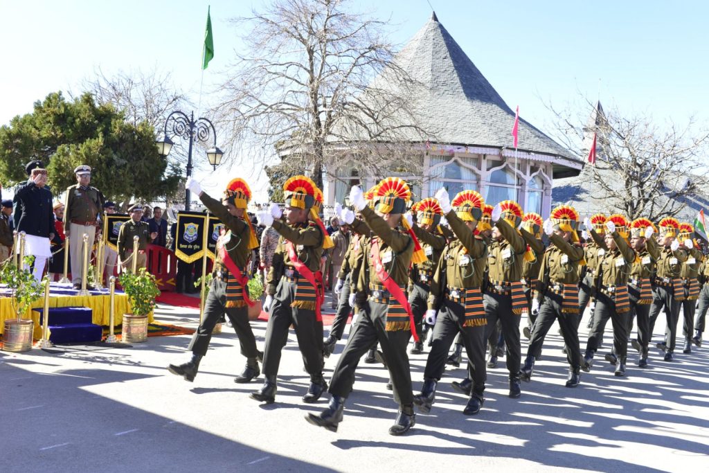 इस अवसर पर सेना,भारत-तिब्बत सीमा पुलिस,हिमाचल प्रदेश सशस्त्र पुलिस,पंजाब पुलिस,राज्य पुलिस,होमगार्ड,अग्निशमन सेवाएं,हिमाचल प्रदेश डाक सेवाएं,आपदा प्रबंधन,पूर्व सैनिक,राष्ट्रीय कैडेट कोर,राष्ट्रीय सेवा योजना कैडेट और भारत स्काउट्स एवं गाइड आदि की टुकड़ियों ने मार्च पास्ट किया।